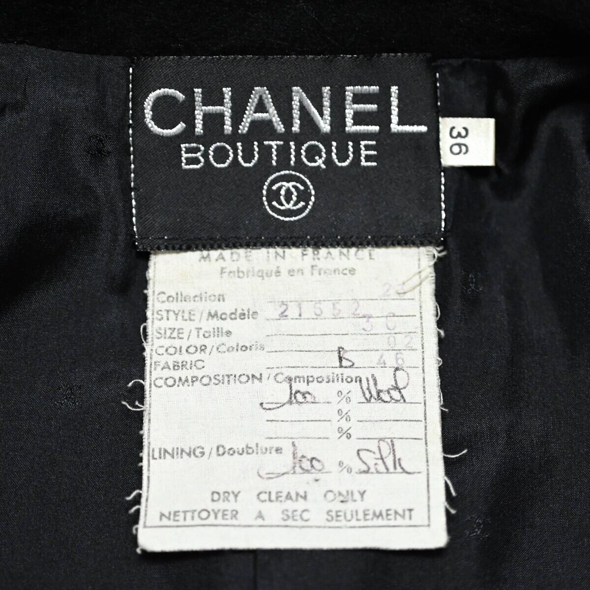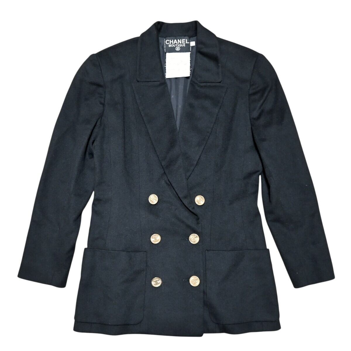 商品名:CHANEL シャネル ヴィンテージ ココマーク ゴールドボタン ウール/シルク テーラード ダブルジャケット 36 ブラック