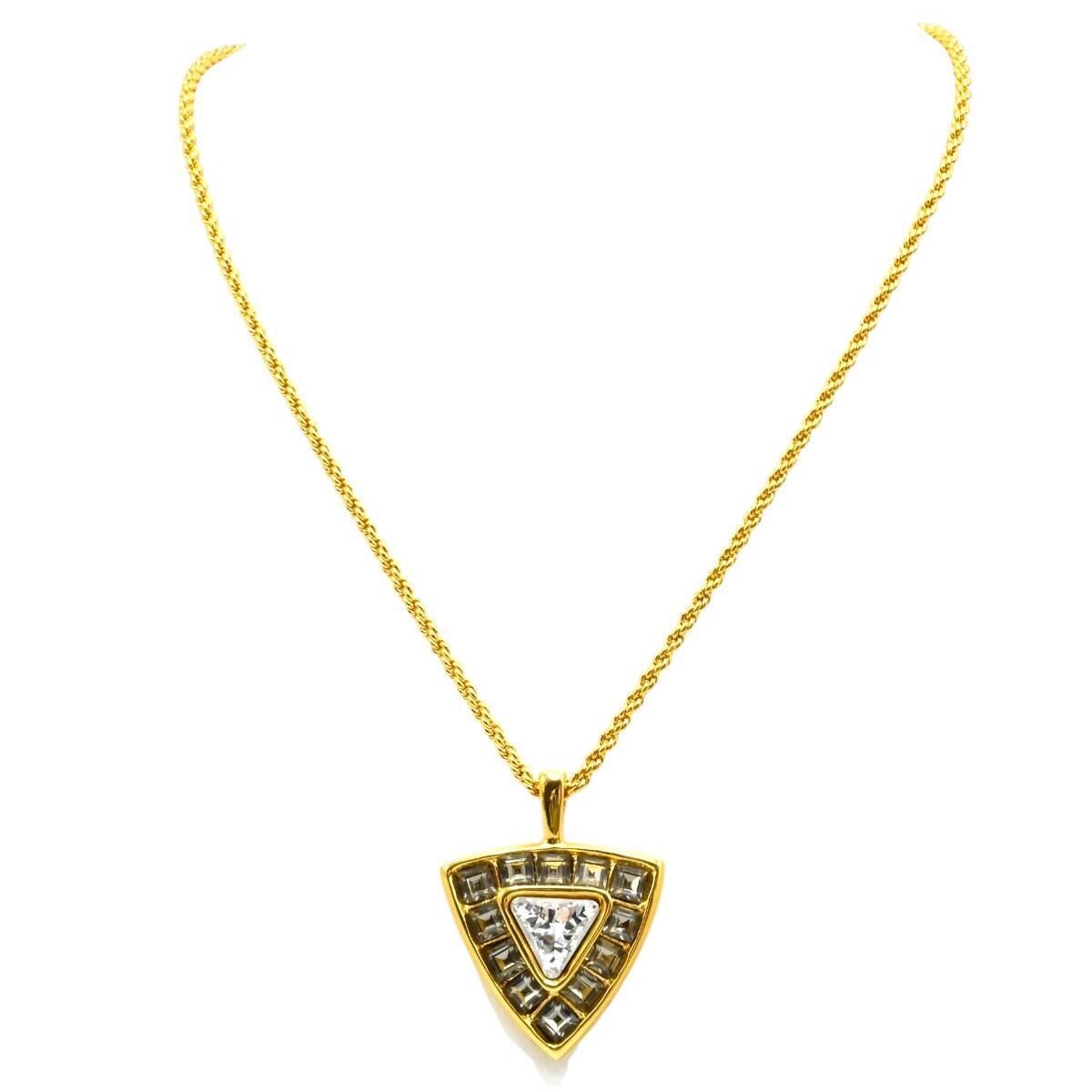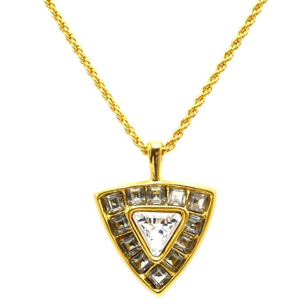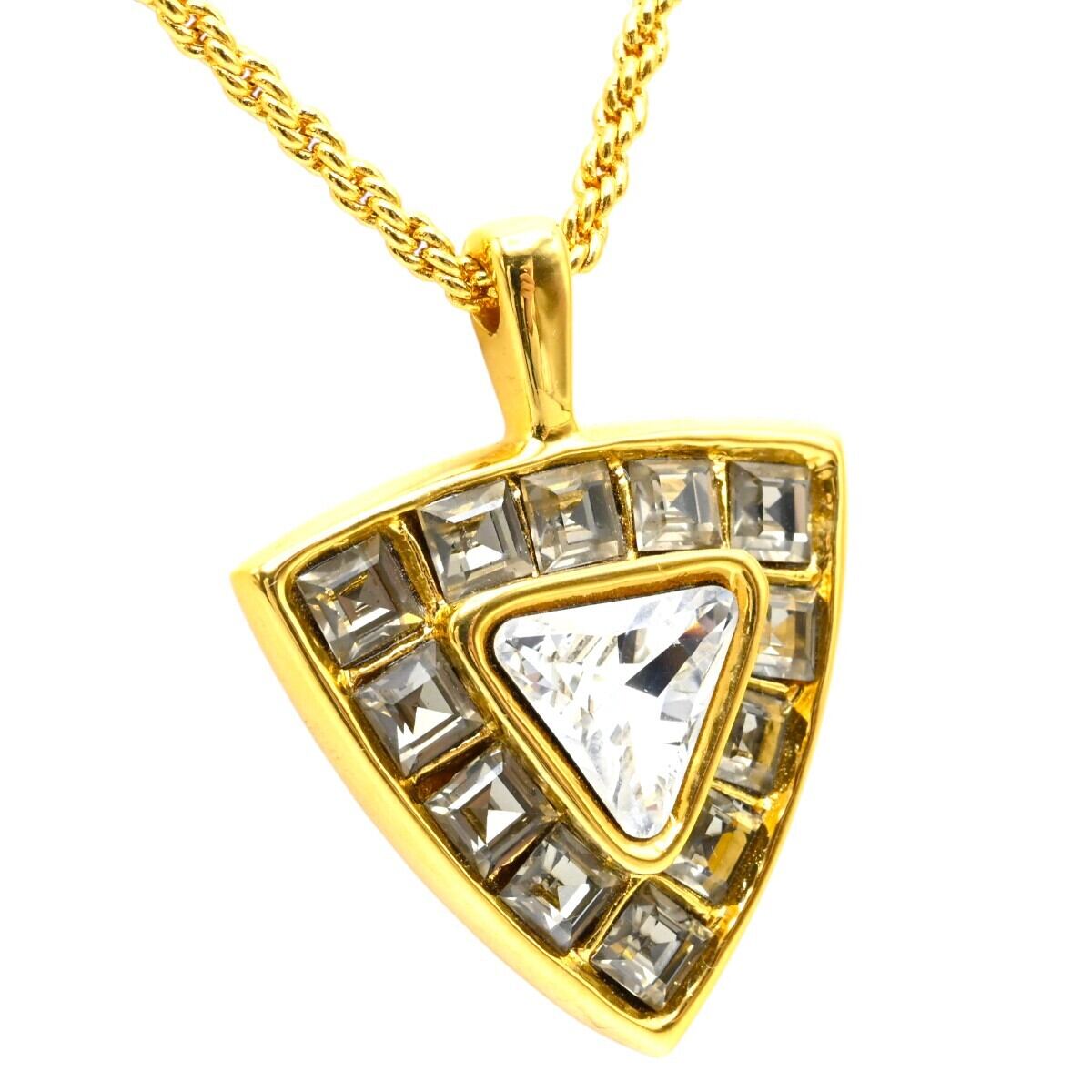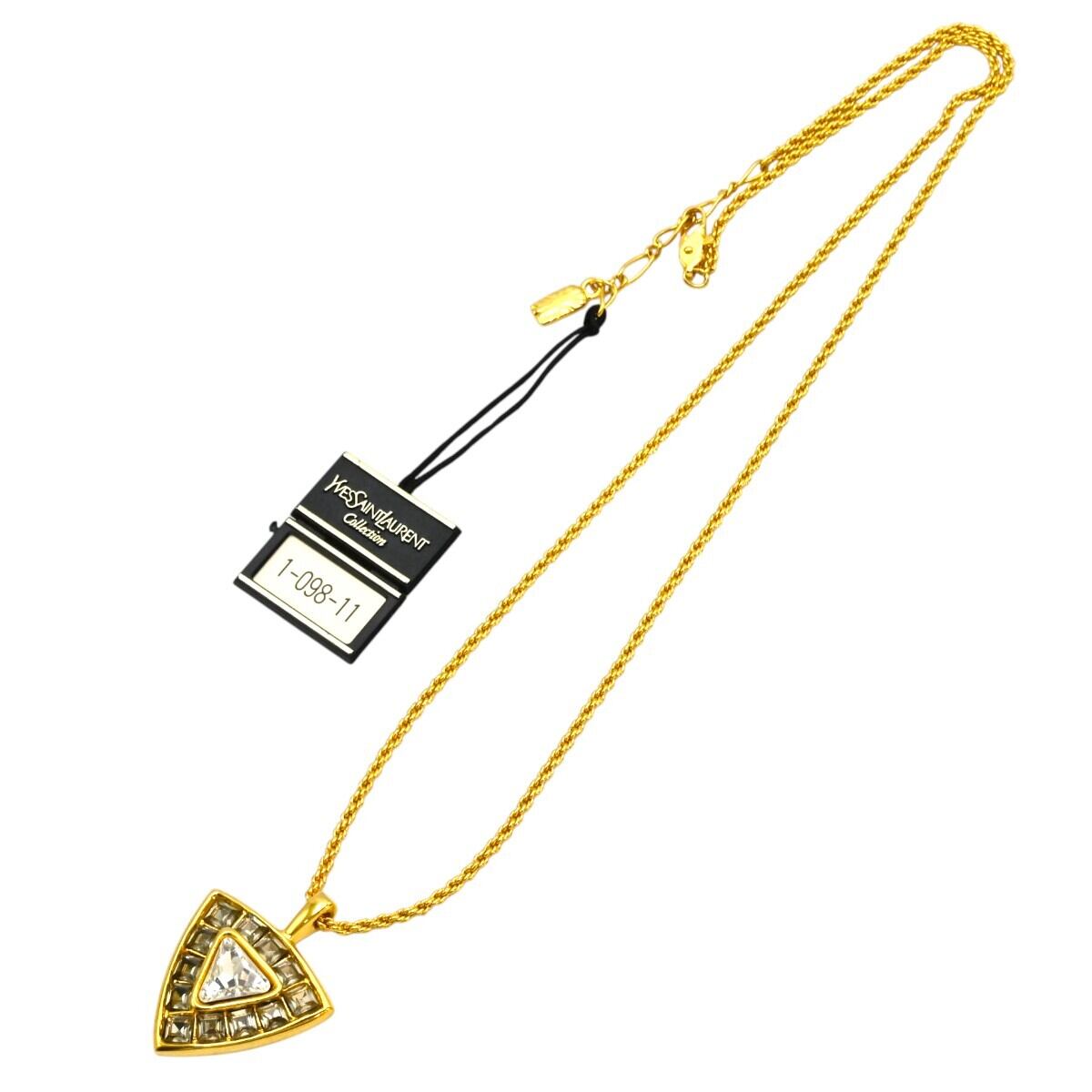 商品名:美品 YVESSAINTLAURENT イヴサンローラン ヴィンテージ トライアングル ラインストーン GP ロングネックレス ゴールド