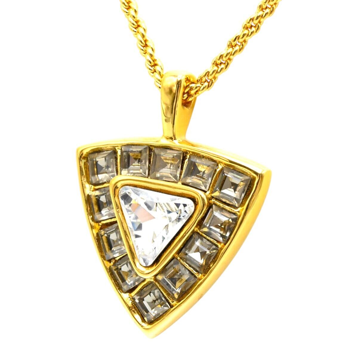 美品 YVESSAINTLAURENT イヴサンローラン ヴィンテージ トライアングル ラインストーン GP ロングネックレス ゴールド K2602-k182
