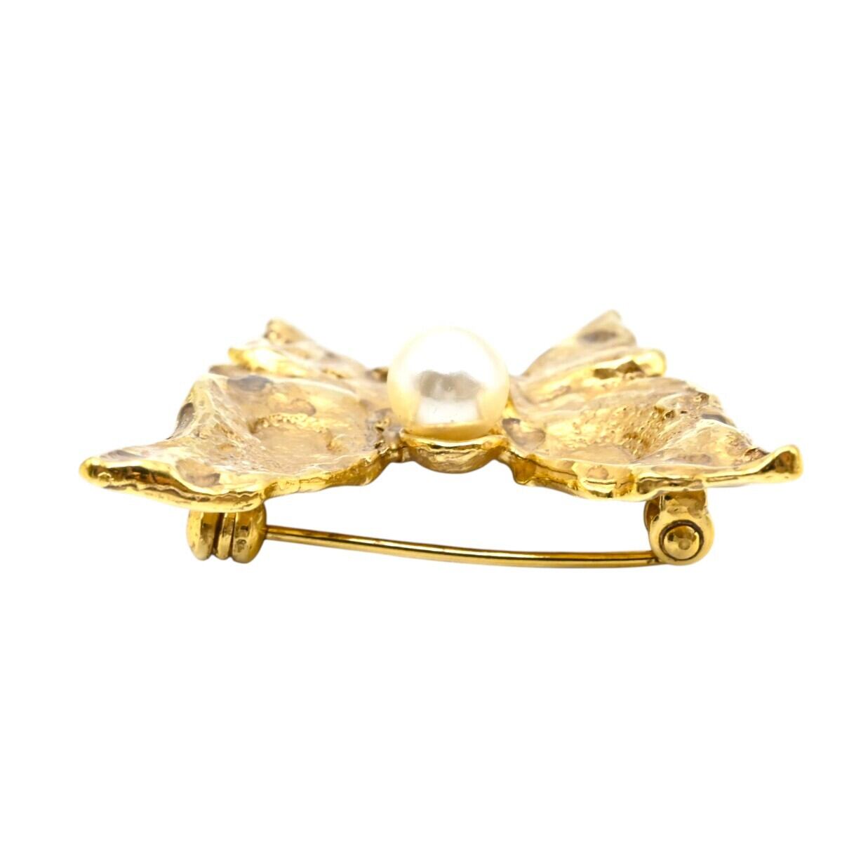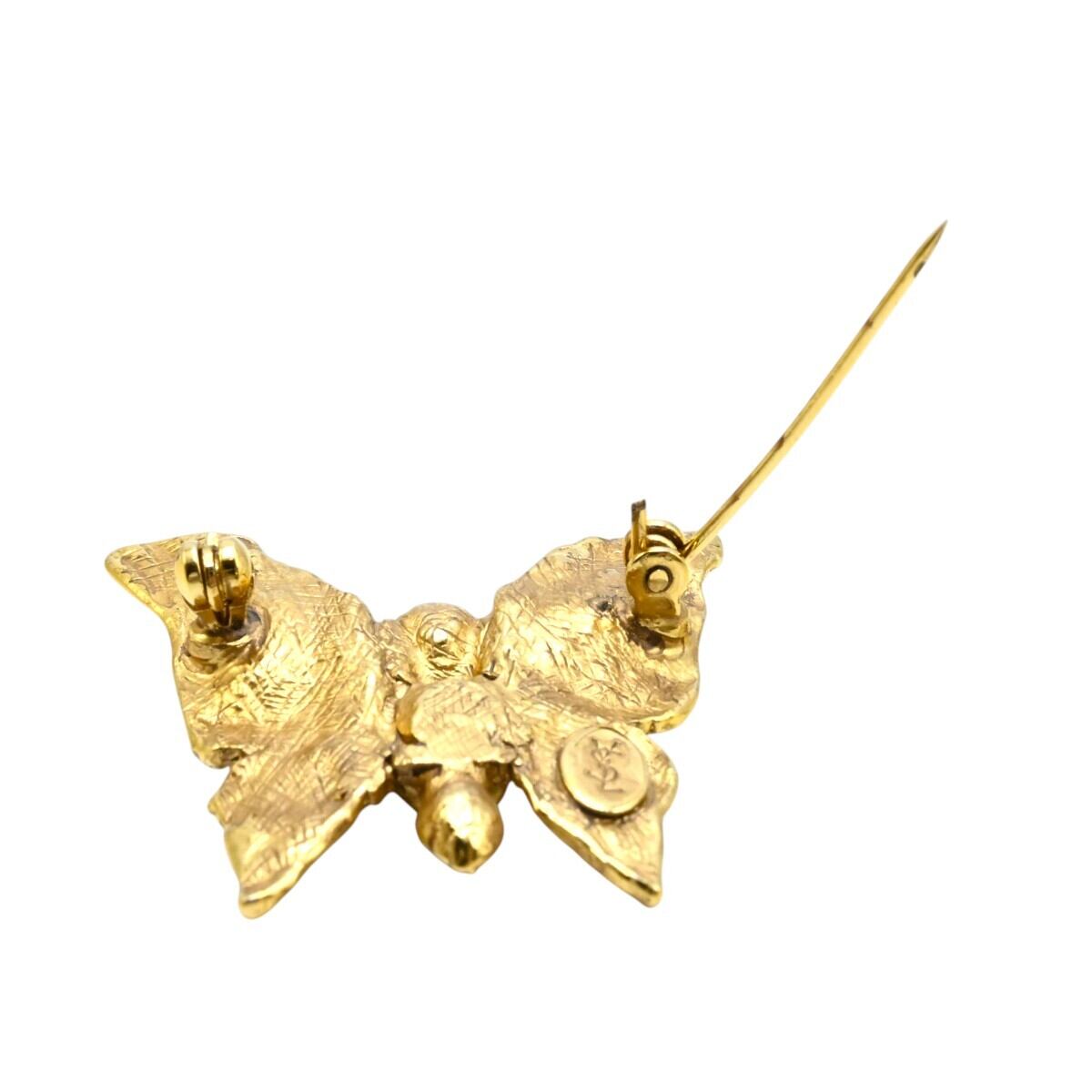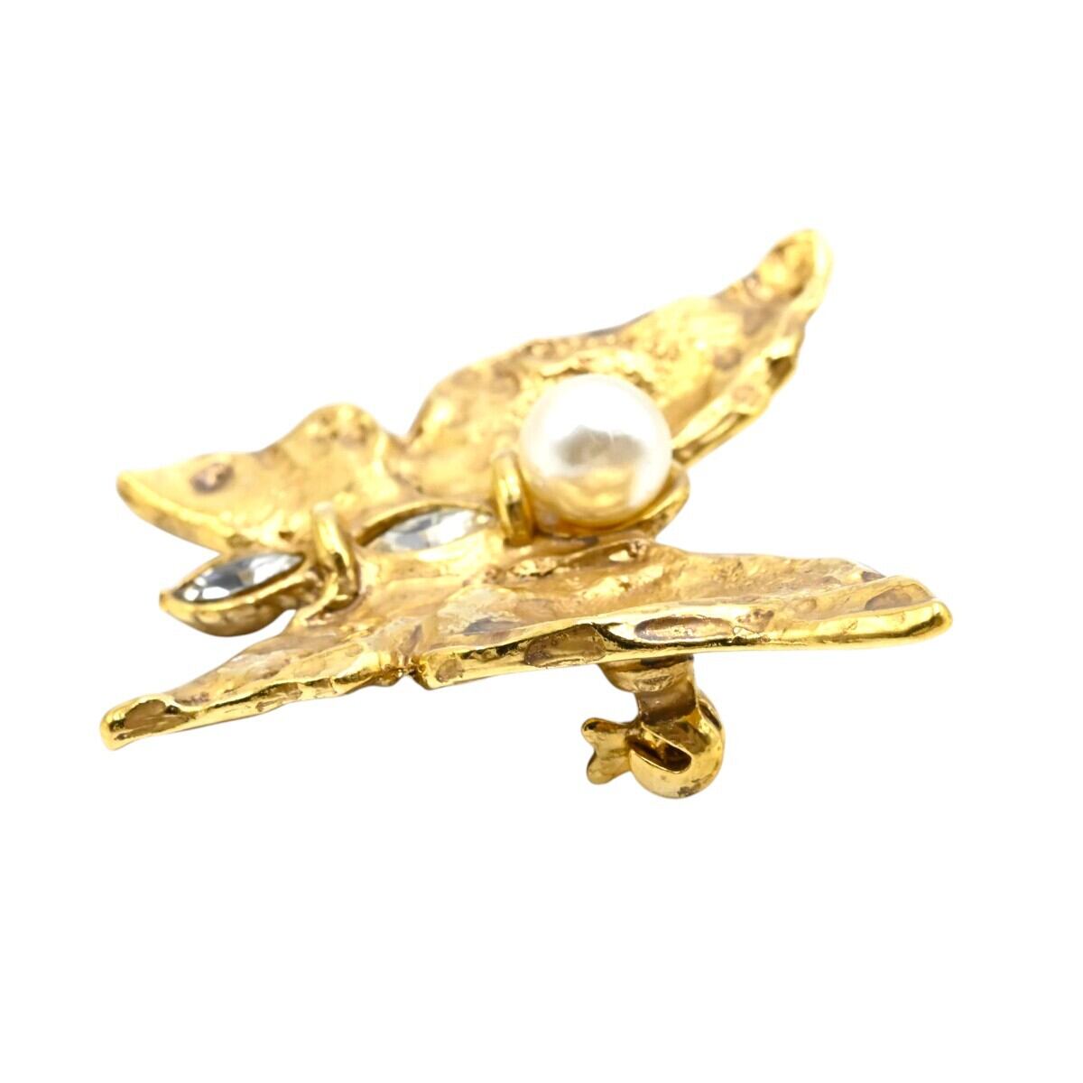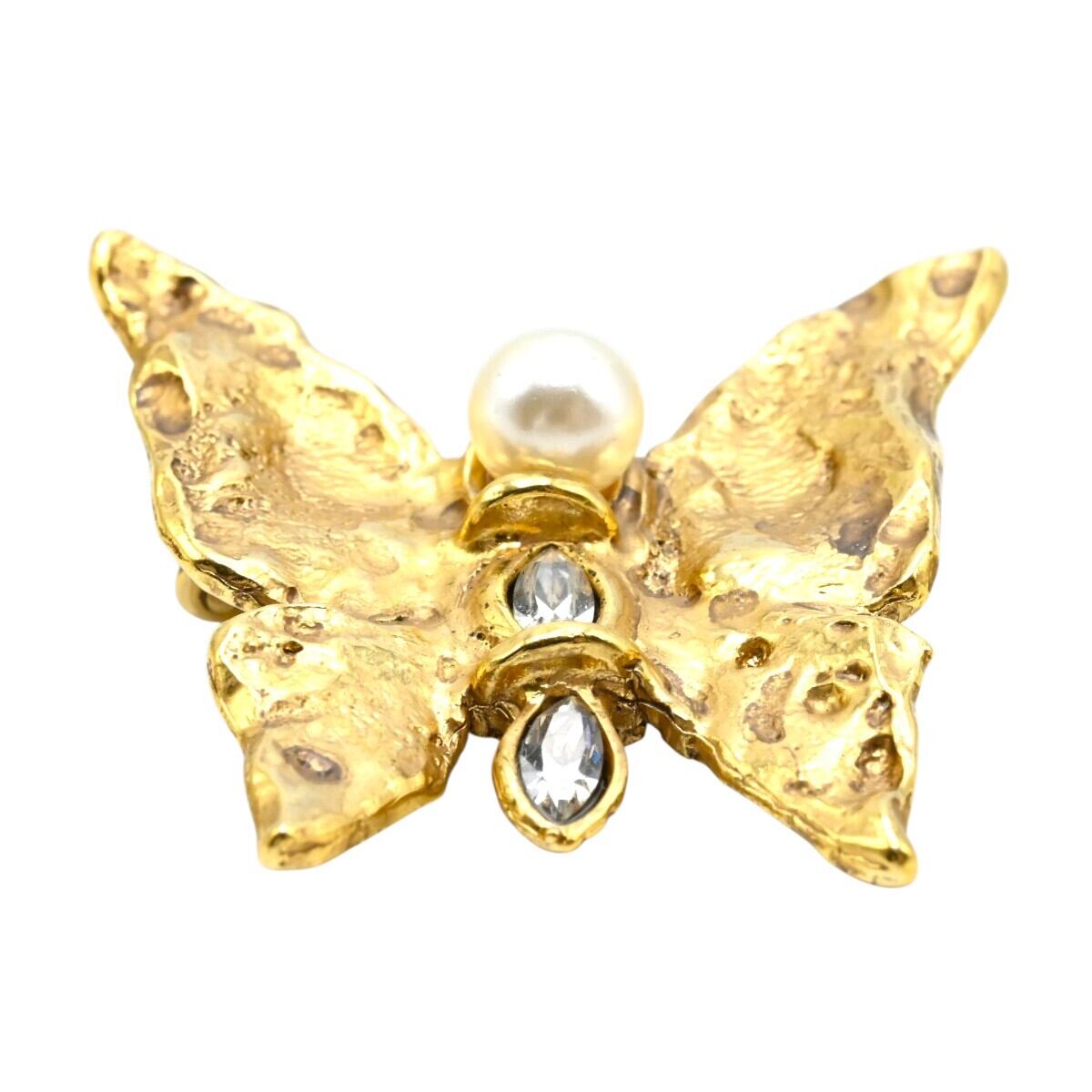 商品名:YVESSAINTLAURENT イヴサンローラン ヴィンテージ バタフライ フェイクパール/ラインストーン GP ブローチ ゴールド