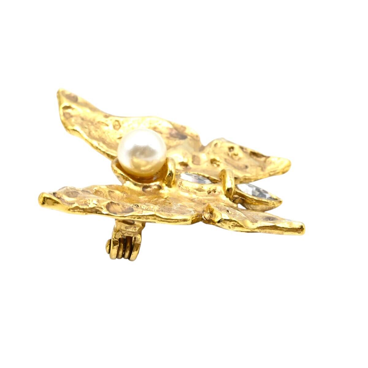 YVESSAINTLAURENT イヴサンローラン ヴィンテージ バタフライ フェイクパール/ラインストーン GP ブローチ ゴールド K2602-k175