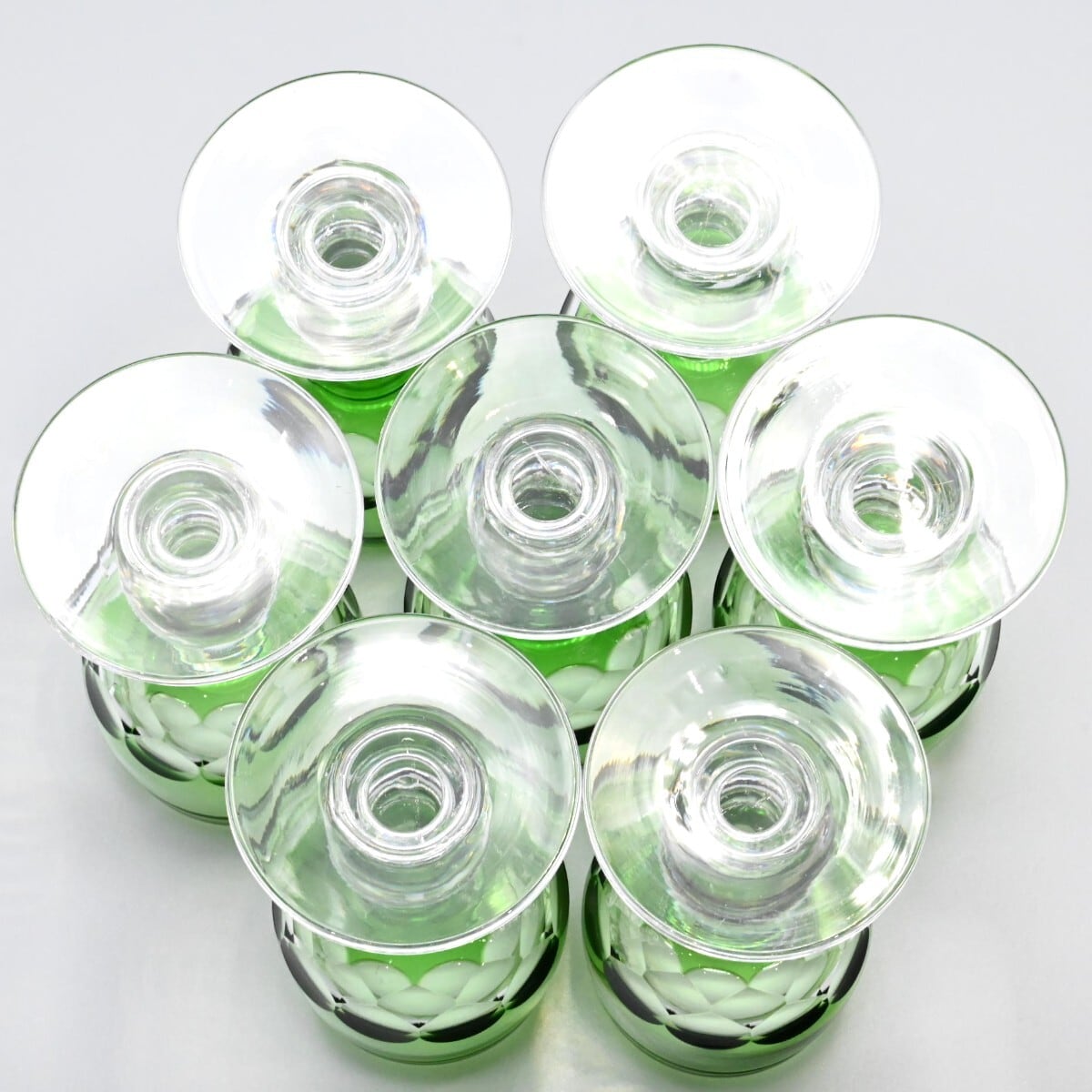 Baccarat オールドバカラ ワイングラス エカイユ エ フィレ 7客セット グリーン 約11cm 1936年以前 M2602-t042