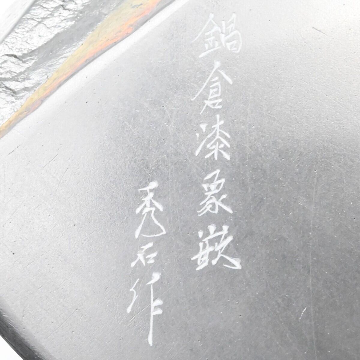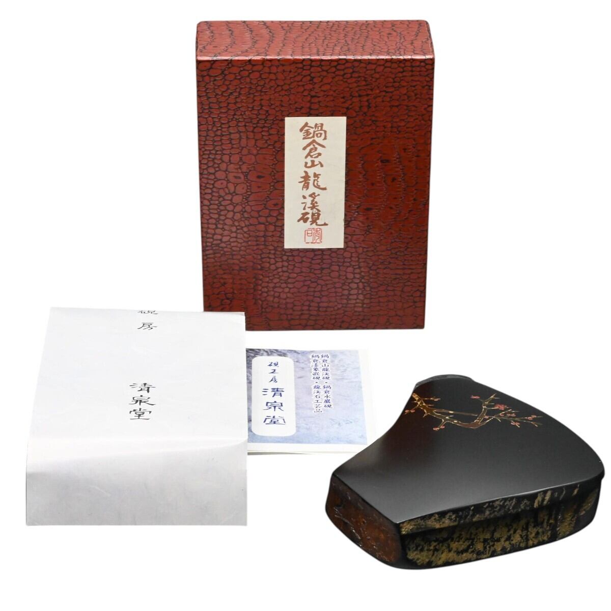 商品名:鍋倉山龍渓硯 鍋倉漆象嵌 梅模様 清泉堂 三代目 深澤秀石作 天然硯 共蓋硯 M2602-s025