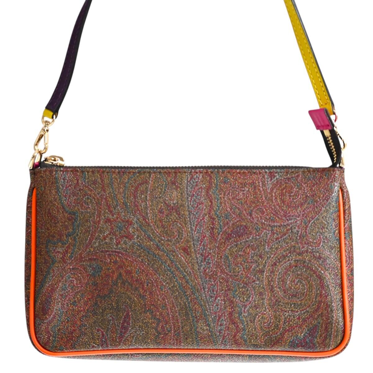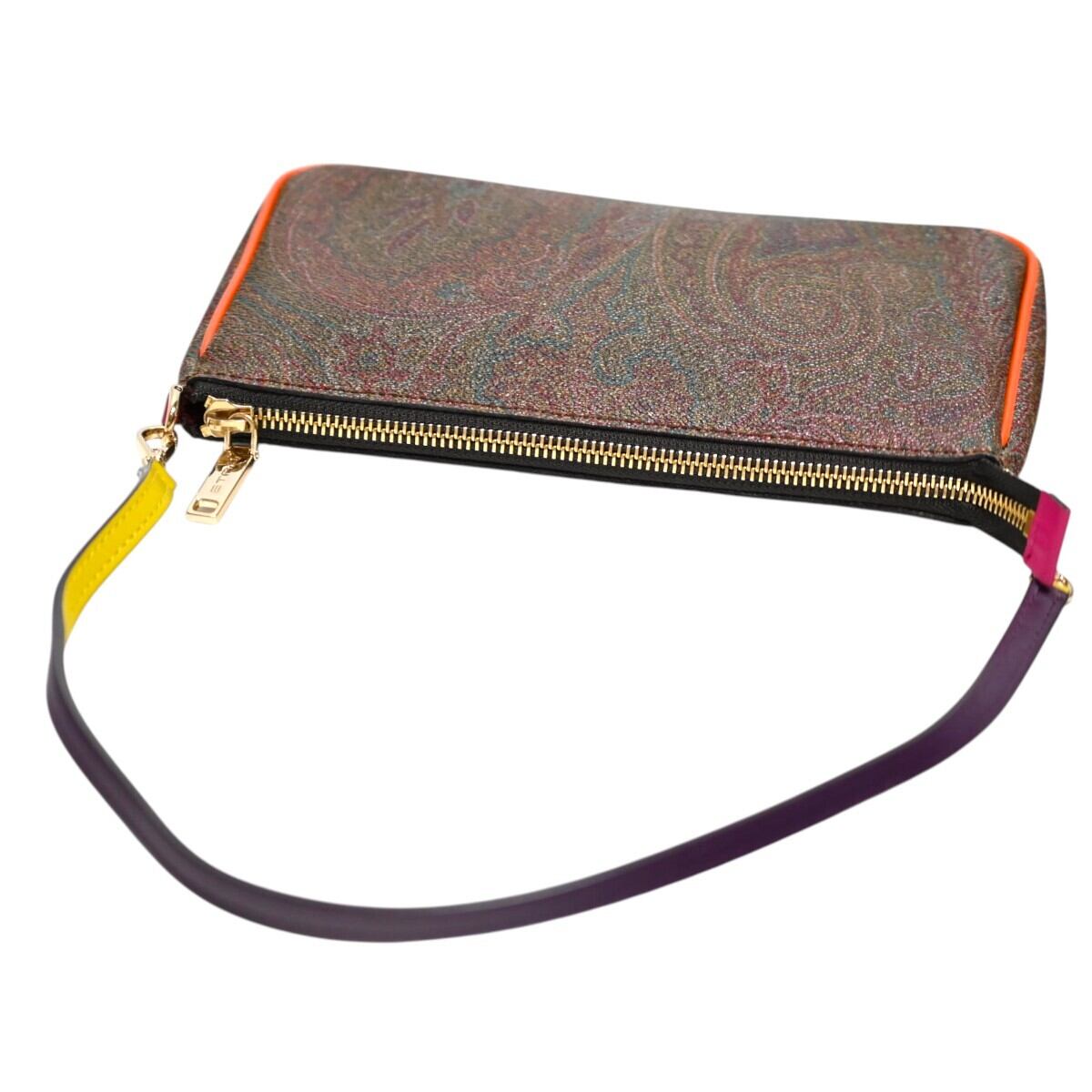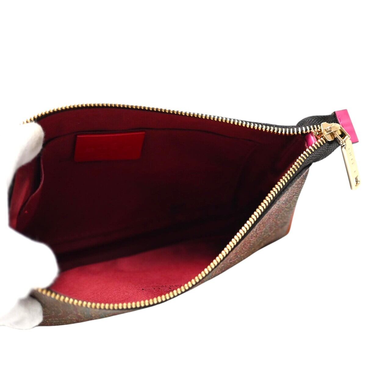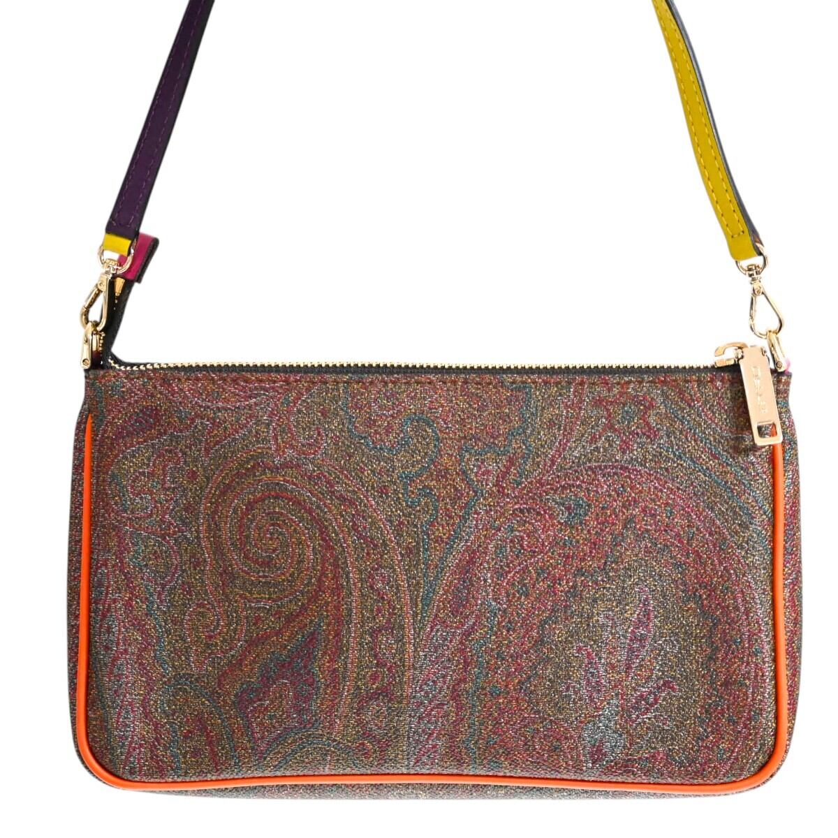 商品名:ETRO エトロ ペイズリー柄 PVC/レザー ミニワンショルダーバッグ アクセサリーポーチ ブラウン/マルチカラー