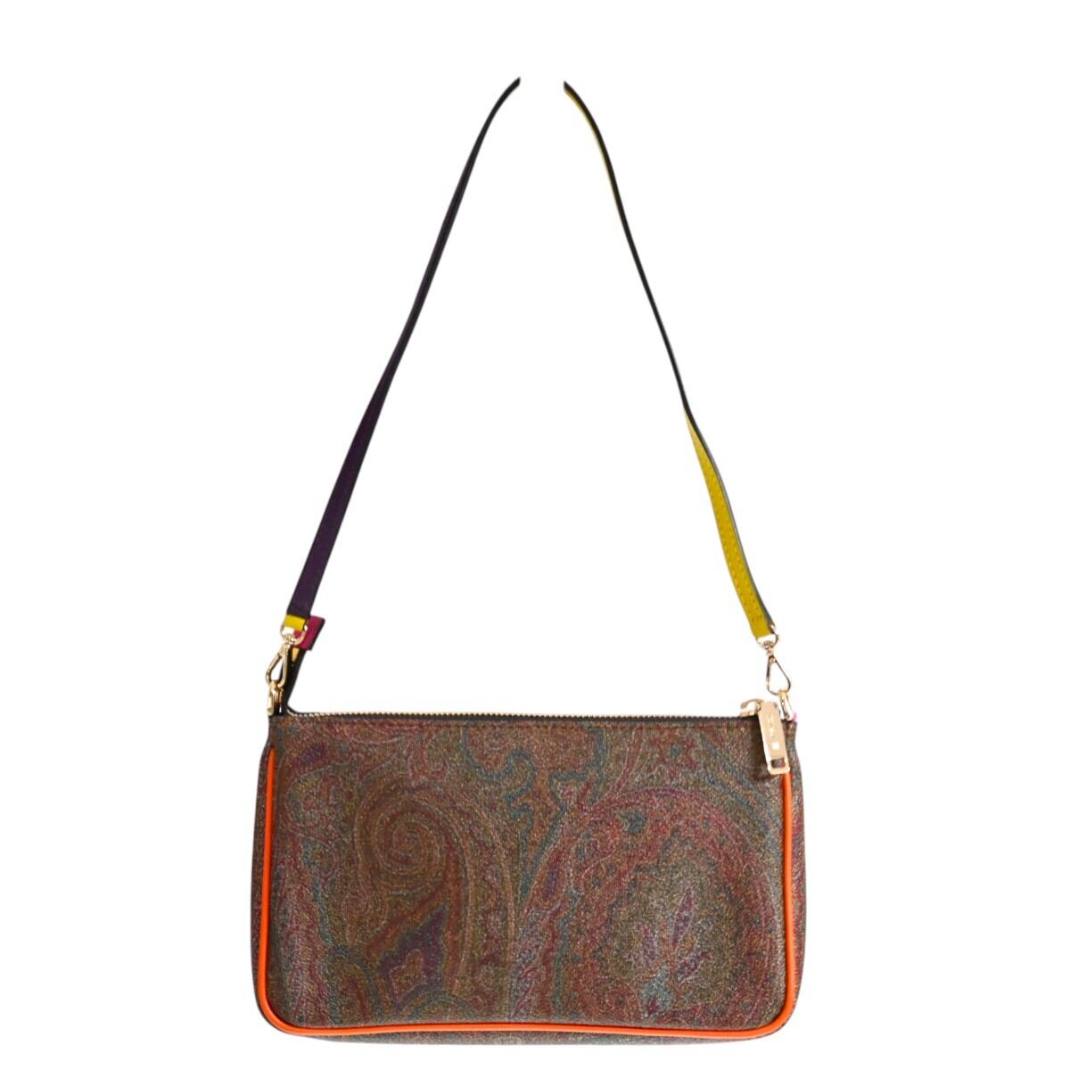 ETRO エトロ ペイズリー柄 PVC/レザー ミニワンショルダーバッグ アクセサリーポーチ ブラウン/マルチカラー K2603-k012