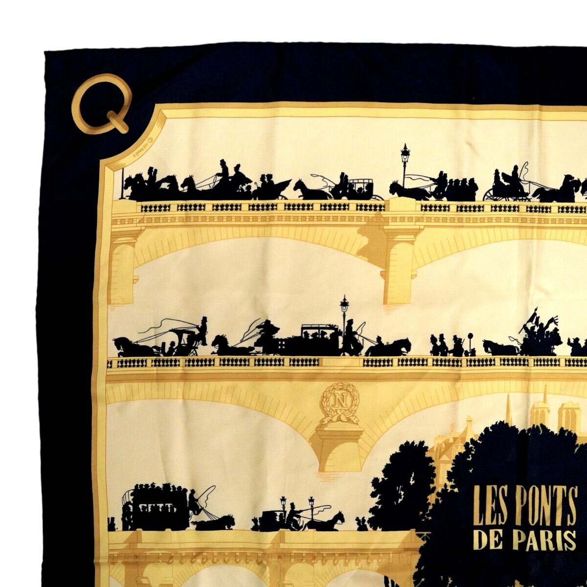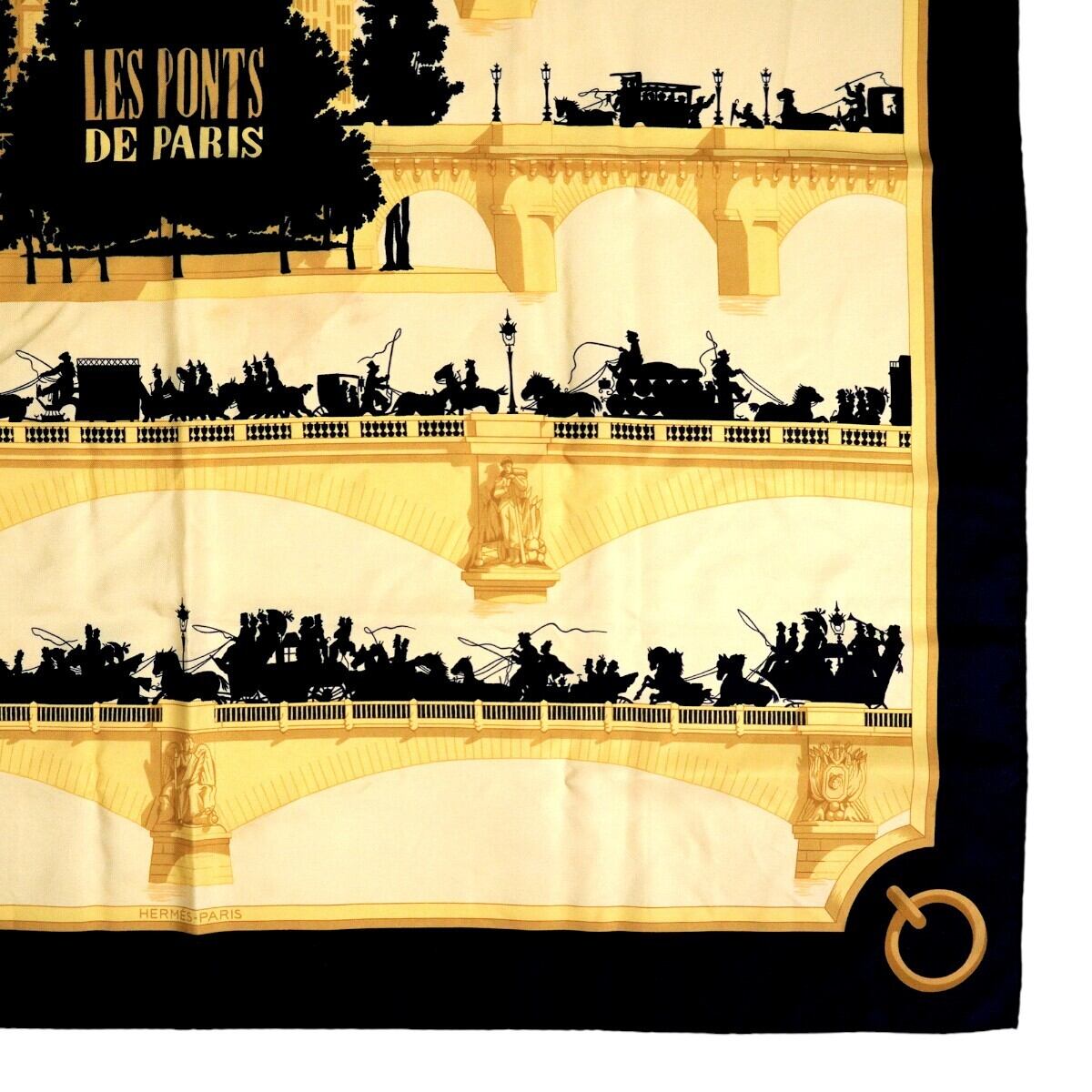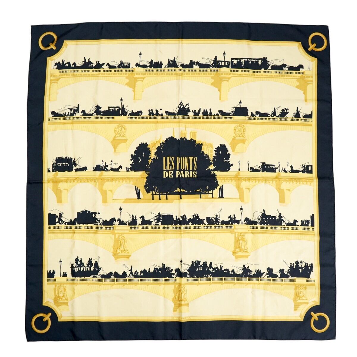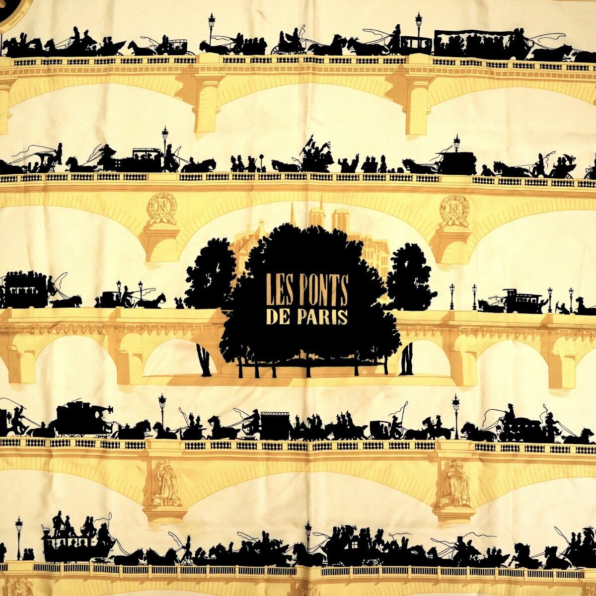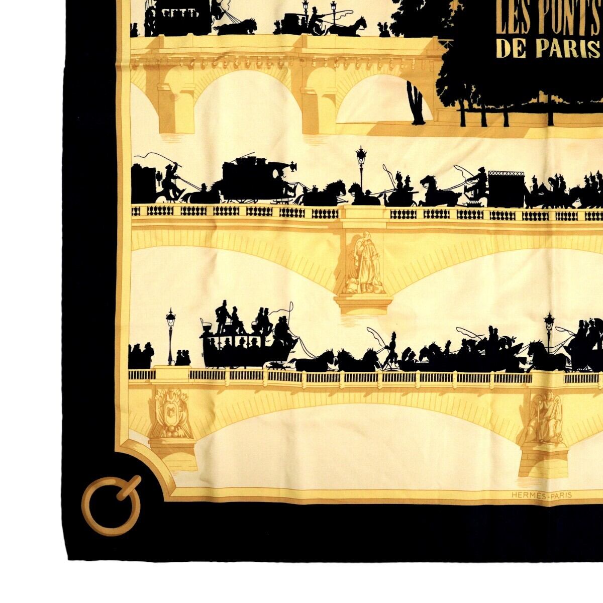 商品名:HERMES LES PONTS DE PARIS エルメス パリの橋 カレ90 シルク 大判スカーフ イエロー/ブラック