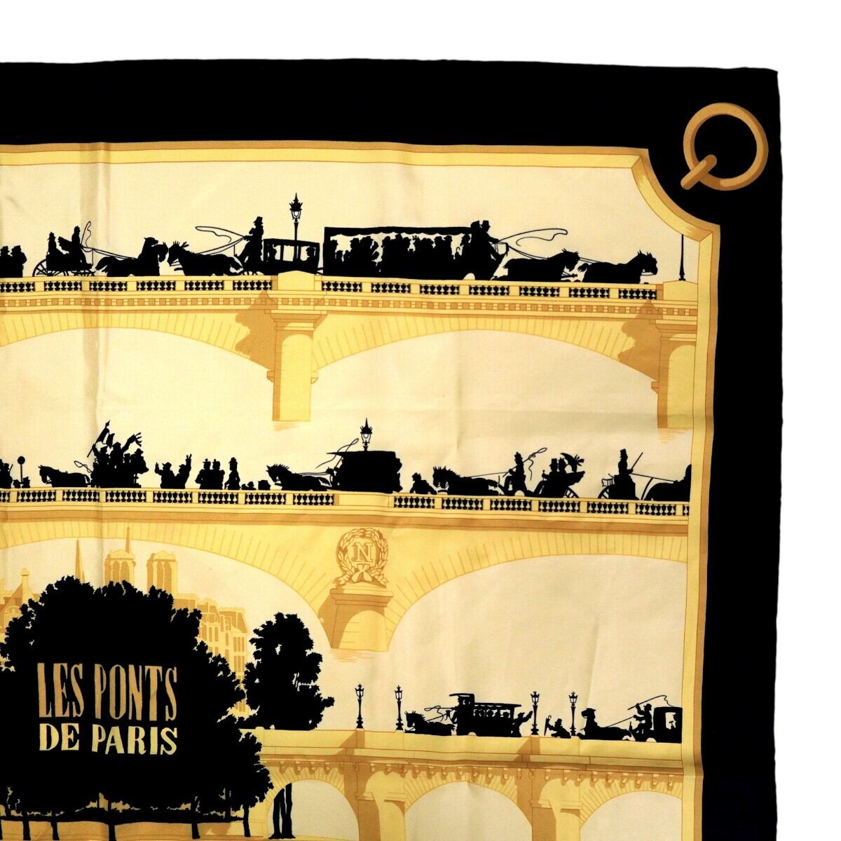 HERMES LES PONTS DE PARIS エルメス パリの橋 カレ90 シルク 大判スカーフ イエロー/ブラック T2603-k014