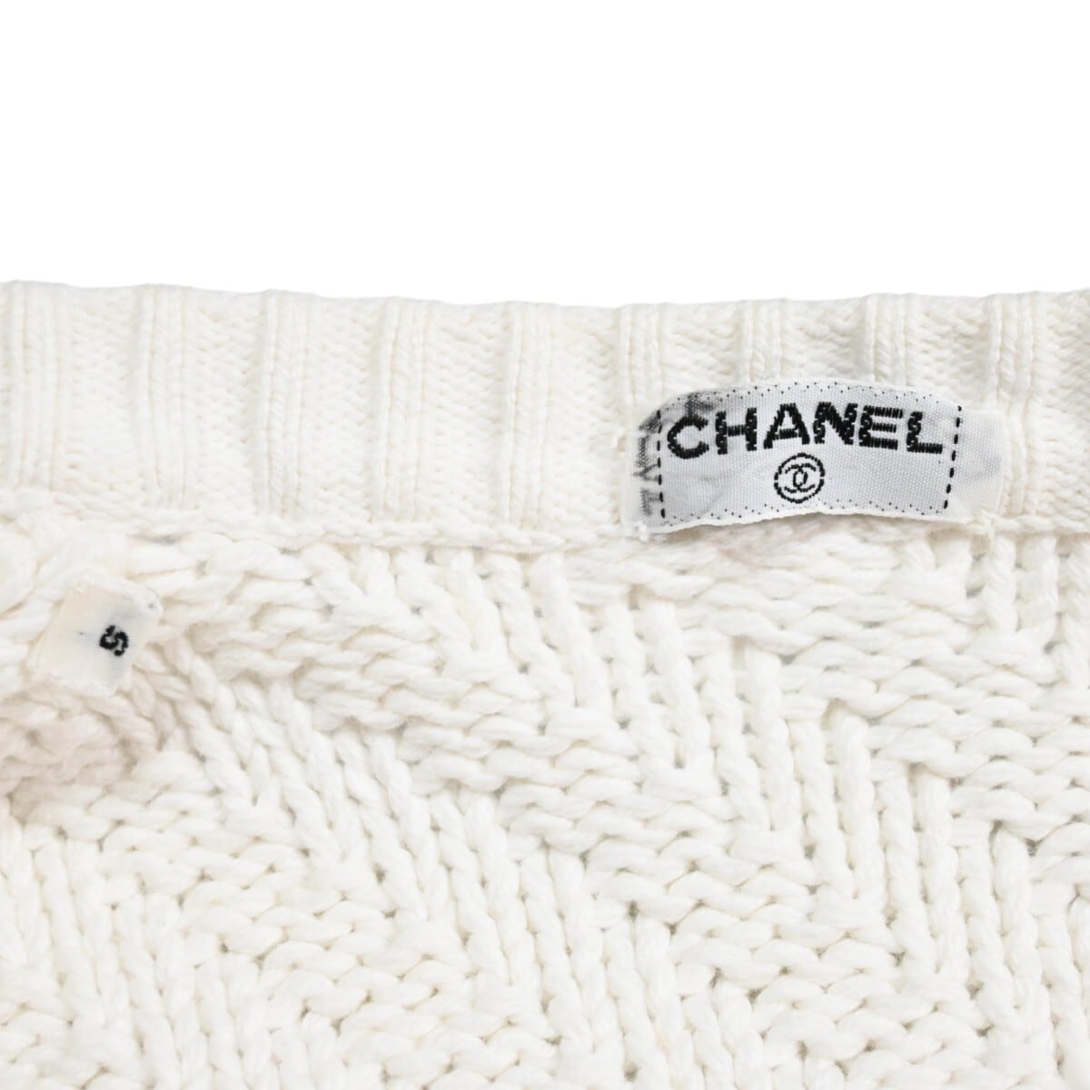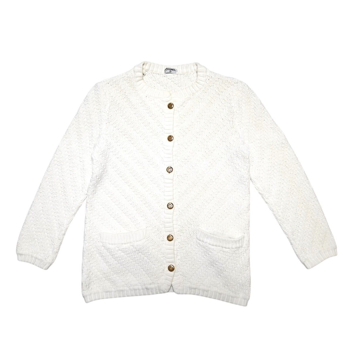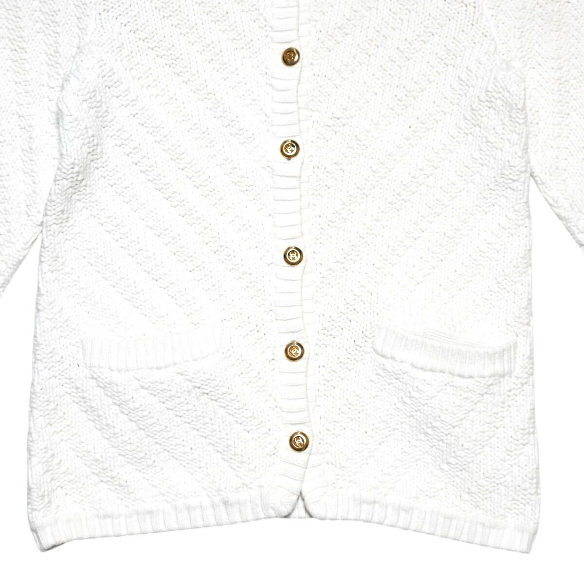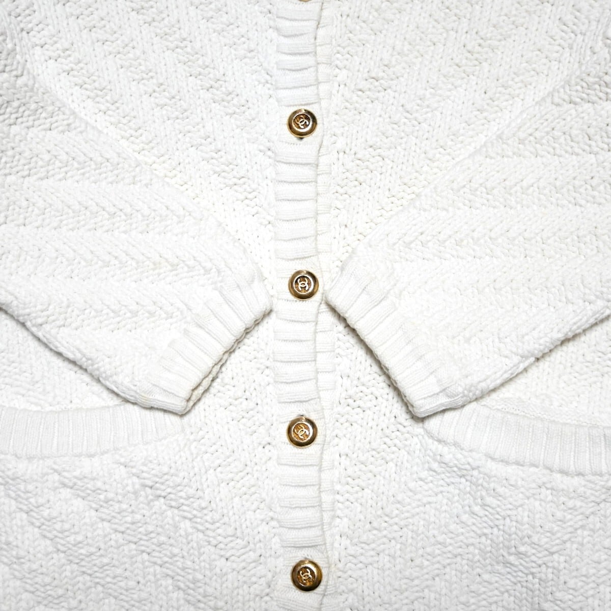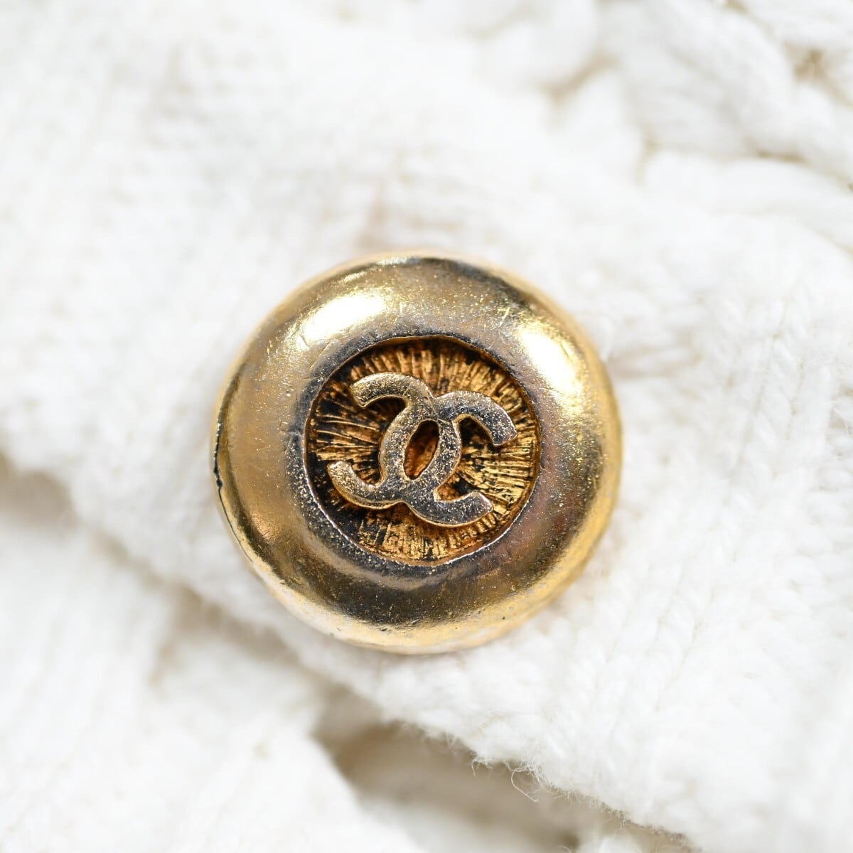 商品名:CHANEL シャネル ヴィンテージ ココマーク ゴールドボタン ケーブルニット カーディガン S ホワイト