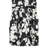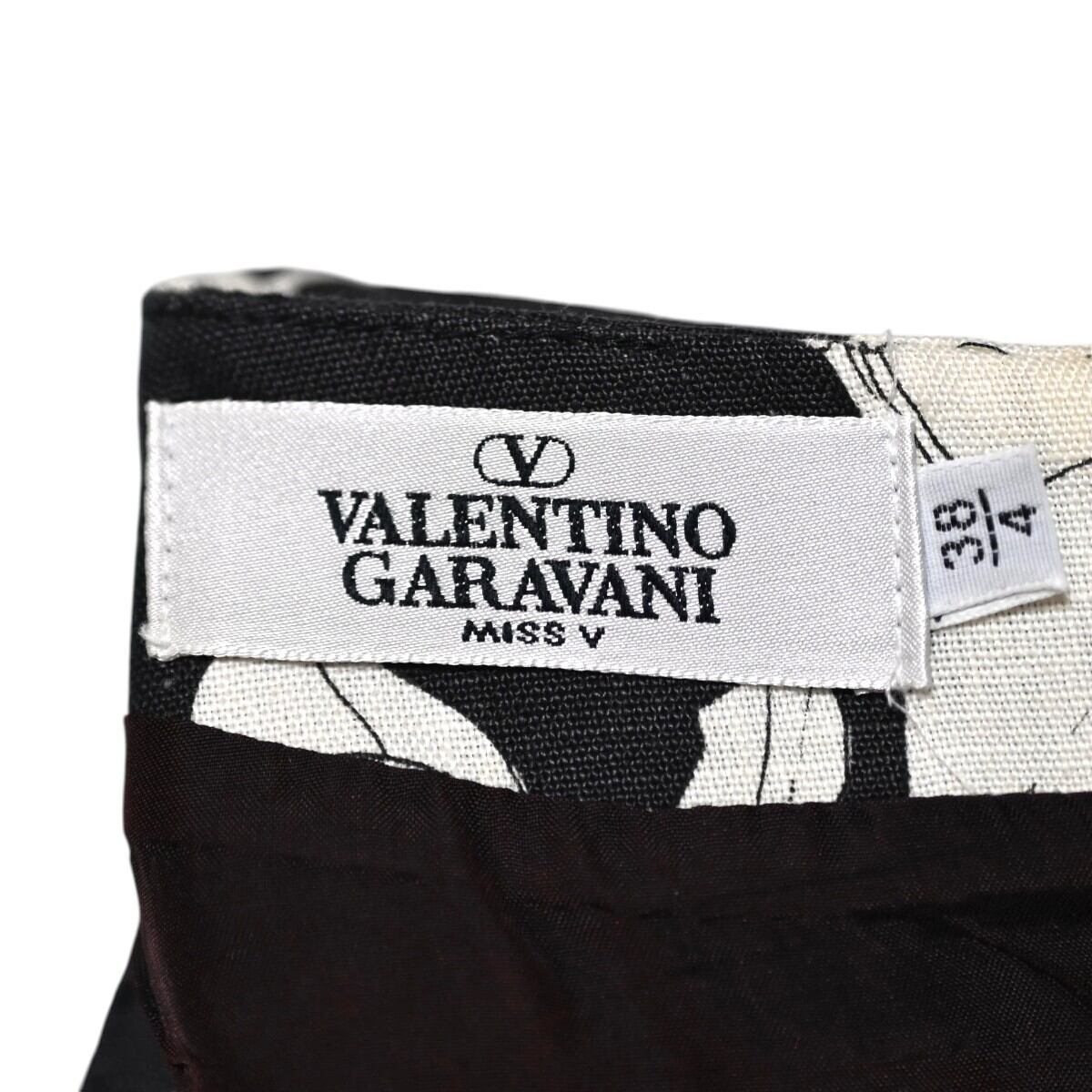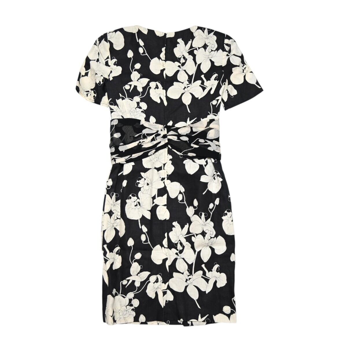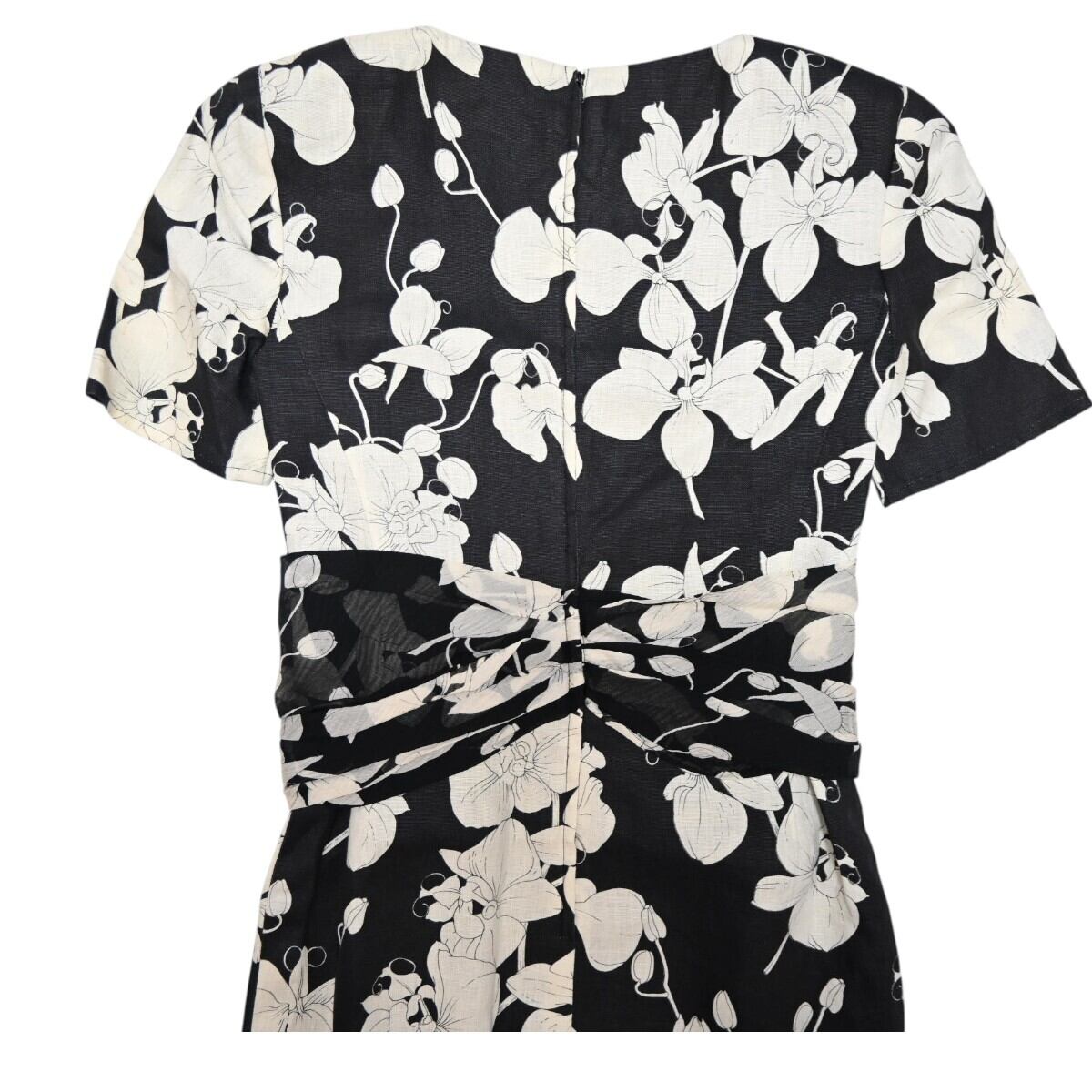 VALENTINO GARAVANI ヴァレンティノガラヴァーニ フラワー柄 リネン/シルク 半袖ワンピース 38/4 ブラック/ホワイト T2603-k041
