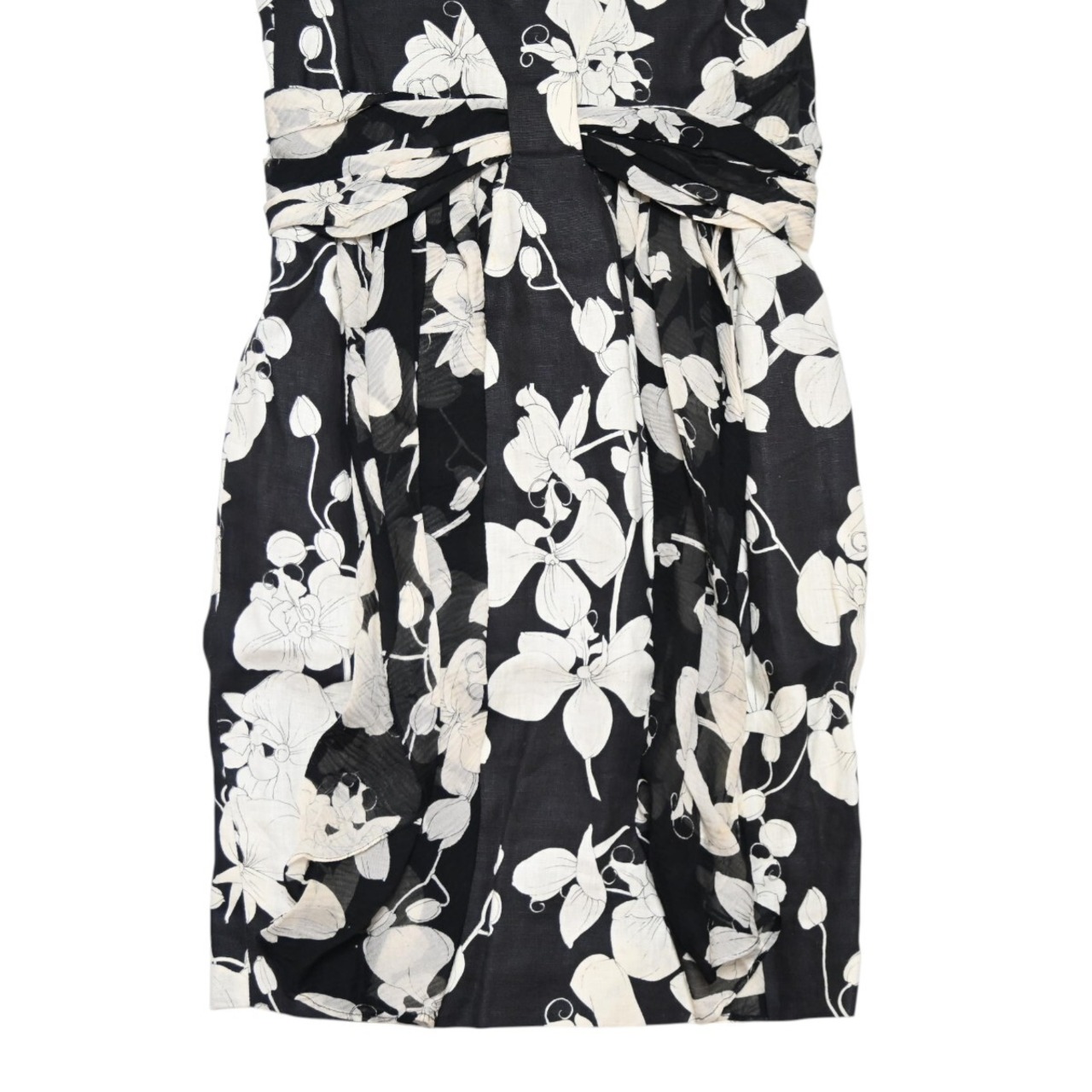 商品名:VALENTINO GARAVANI ヴァレンティノガラヴァーニ フラワー柄 リネン/シルク 半袖ワンピース 38/4 ブラック/ホワイト