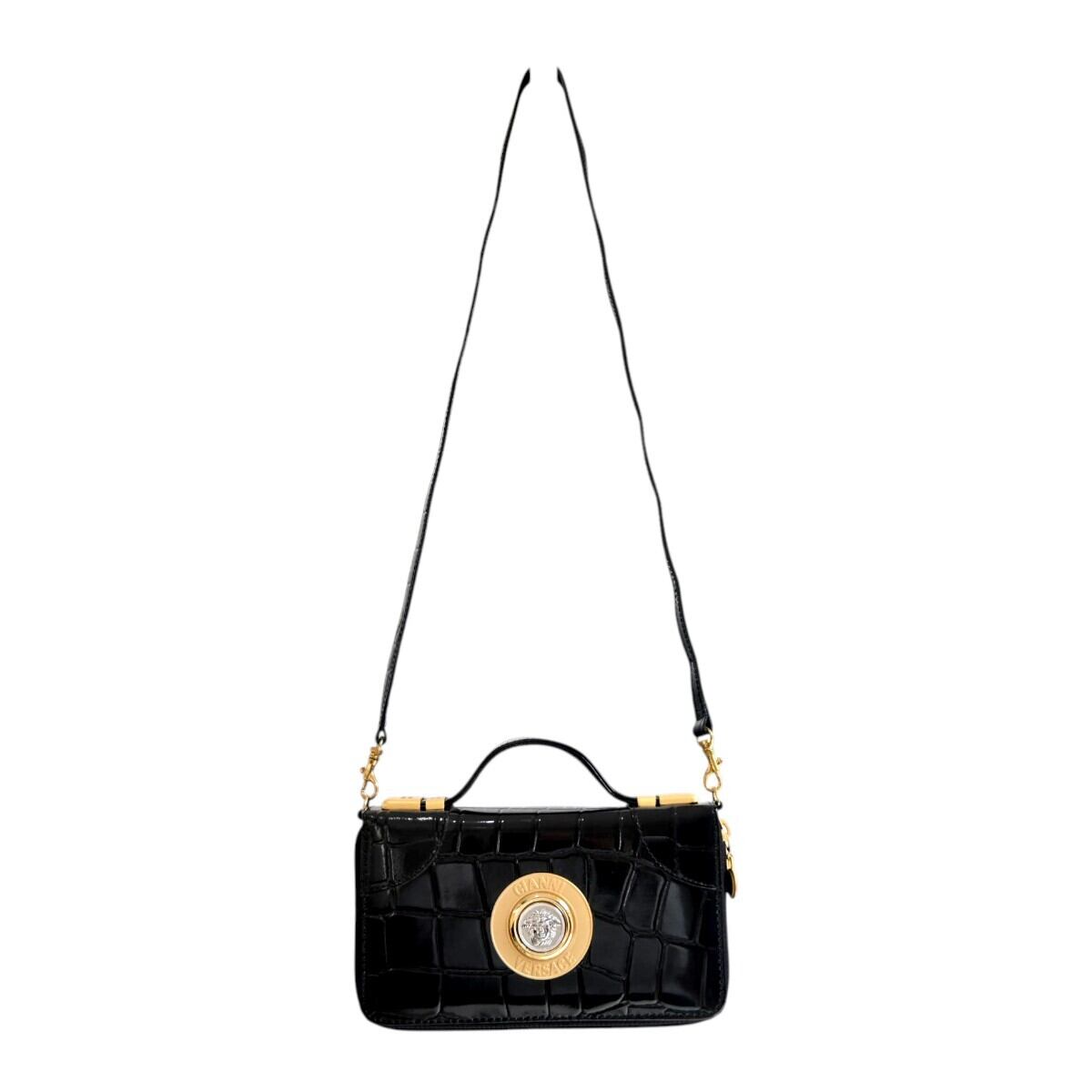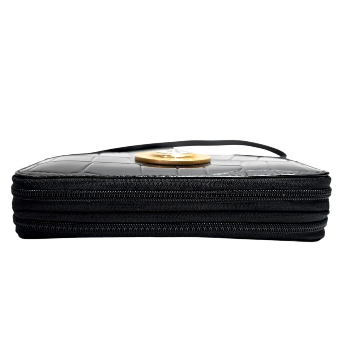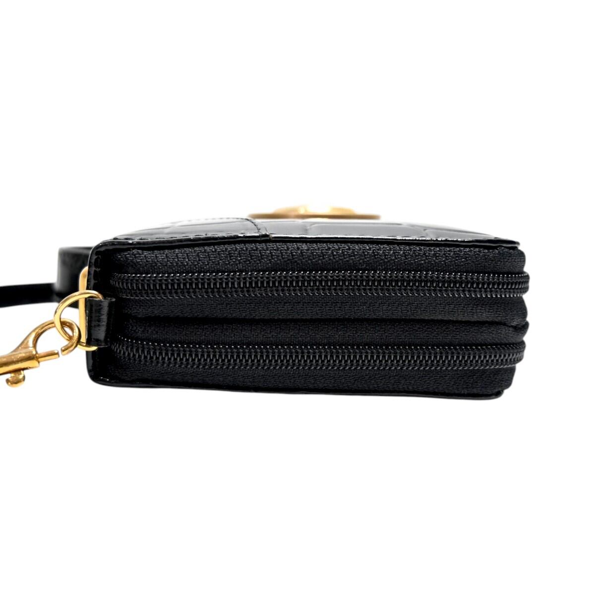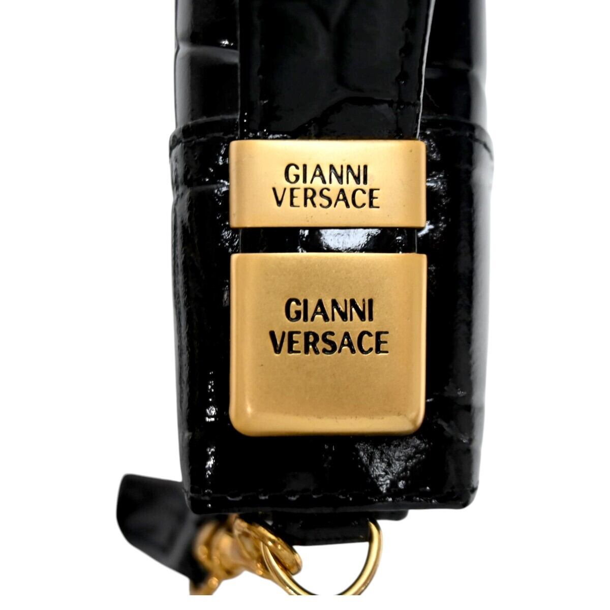 美品 GIANNI VERSACE ジャンニヴェルサーチ メデューサ クロコ型押しパテントレザー クラッチ ショルダーウォレット ブラック T2603-k077