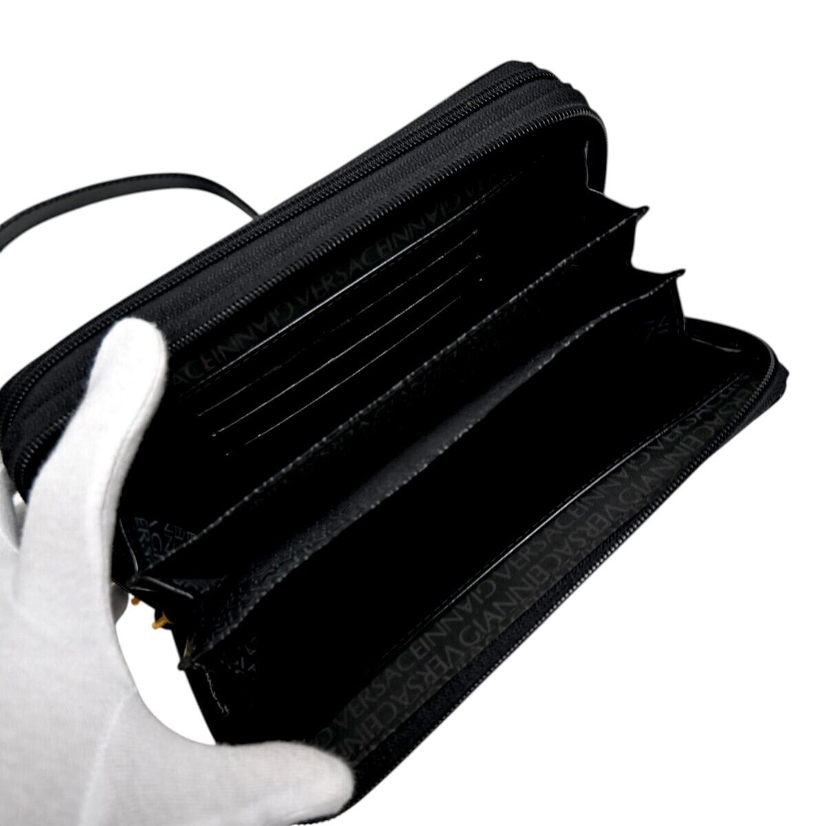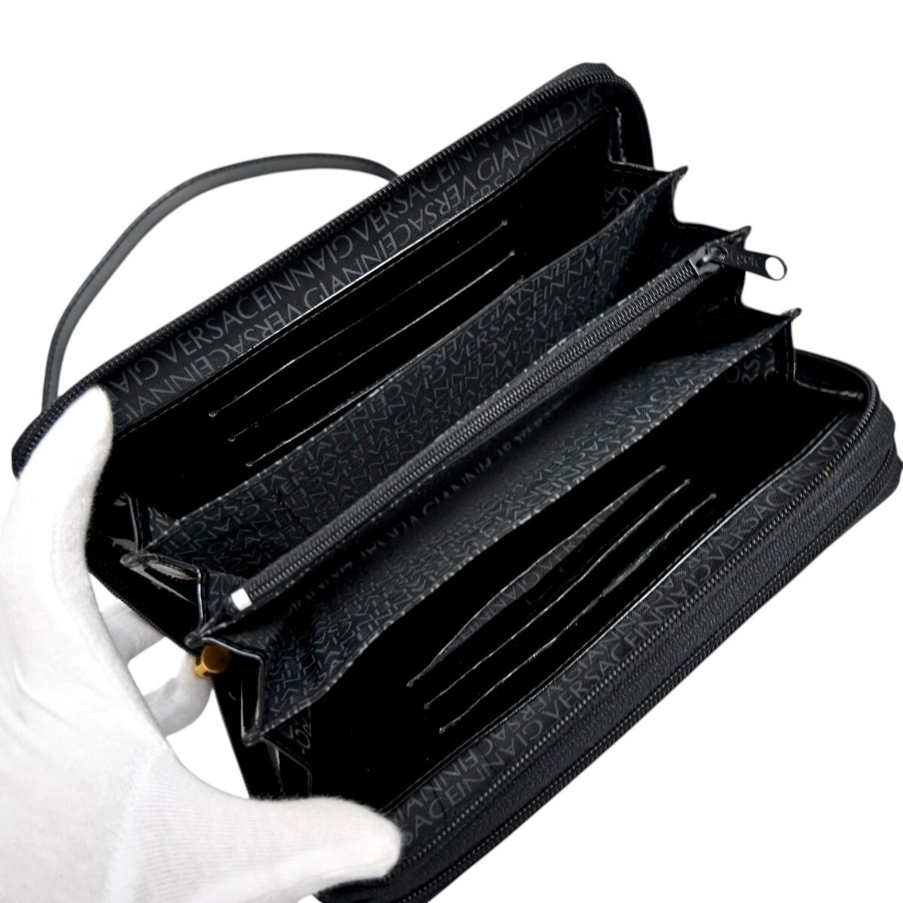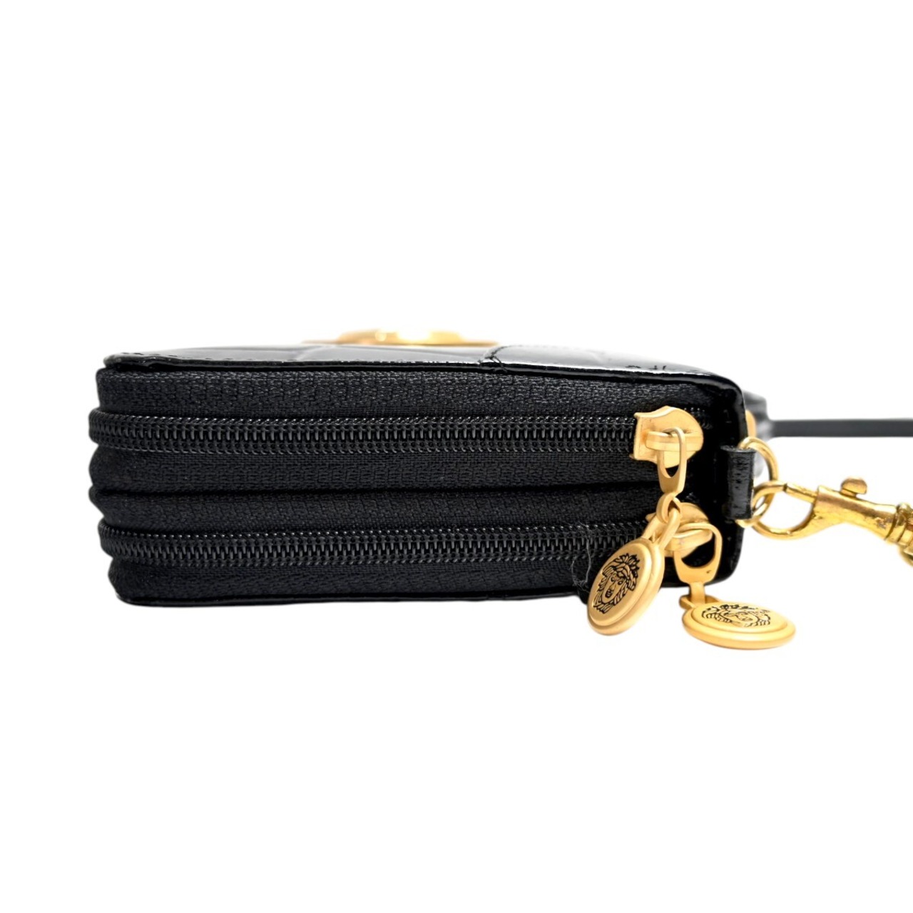 商品名:美品 GIANNI VERSACE ジャンニヴェルサーチ メデューサ クロコ型押しパテントレザー クラッチ ショルダーウォレット ブラック