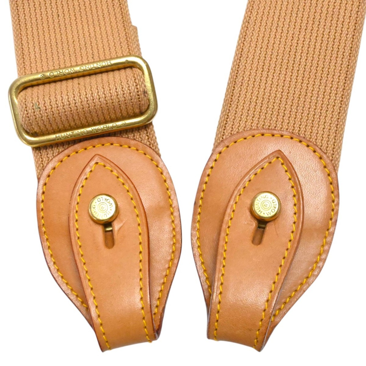HUNTING WORLD ハンティングワールド キャンバス/レザー ショルダーストラップ ベージュ/ゴールド K2603-k084