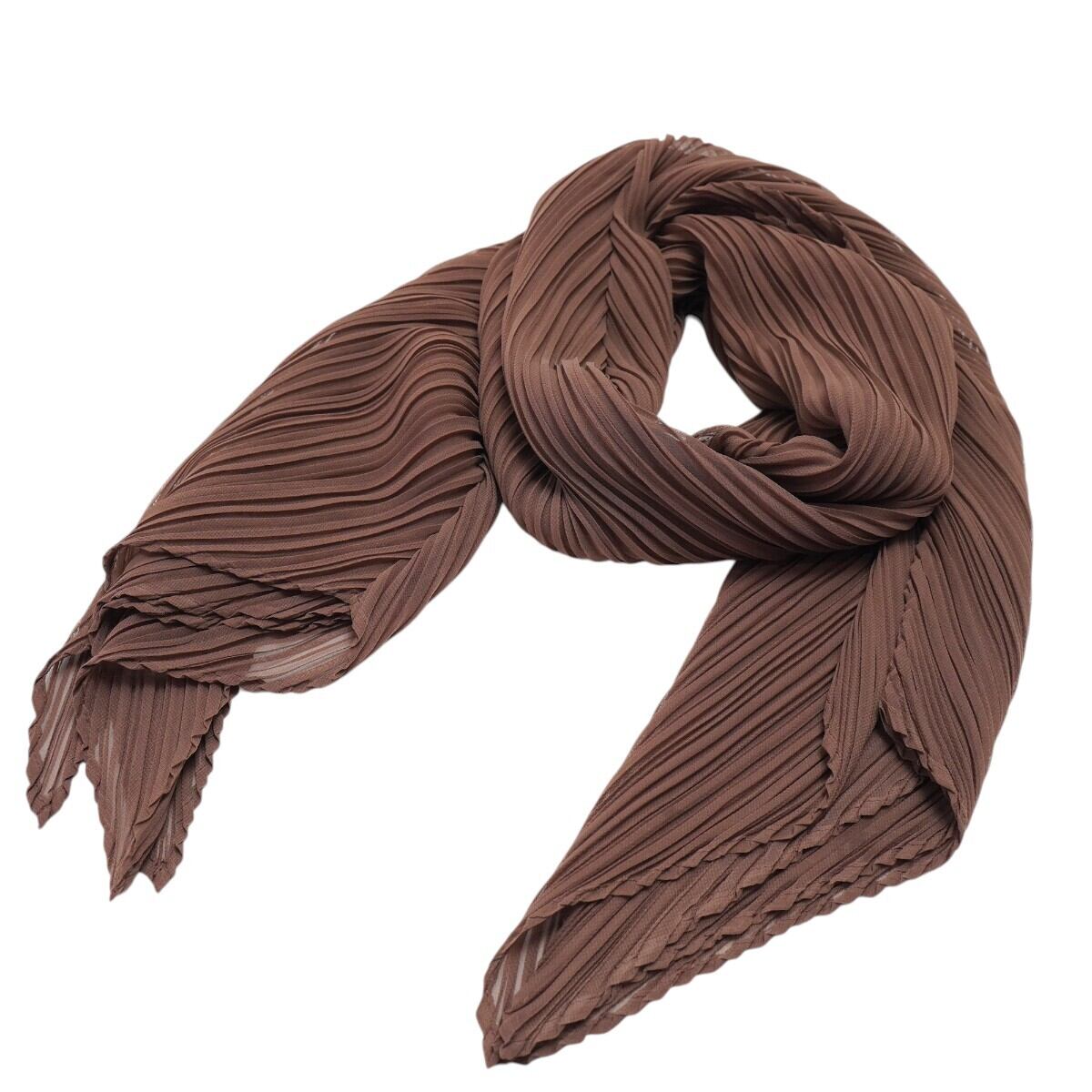 ISSEY MIYAKE PLEATS PLEASE イッセイミヤケ プリーツプリーズ ポリエステル シースルー ショール ストール ブラウン M2604-k005