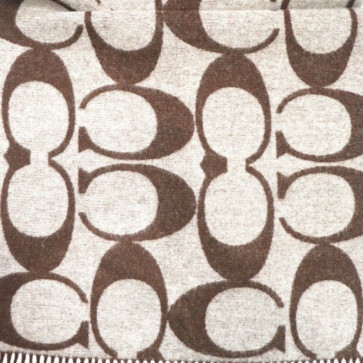 商品名: COACH コーチ シグネチャー リバーシブル ウール フリンジ マフラー ブラウン