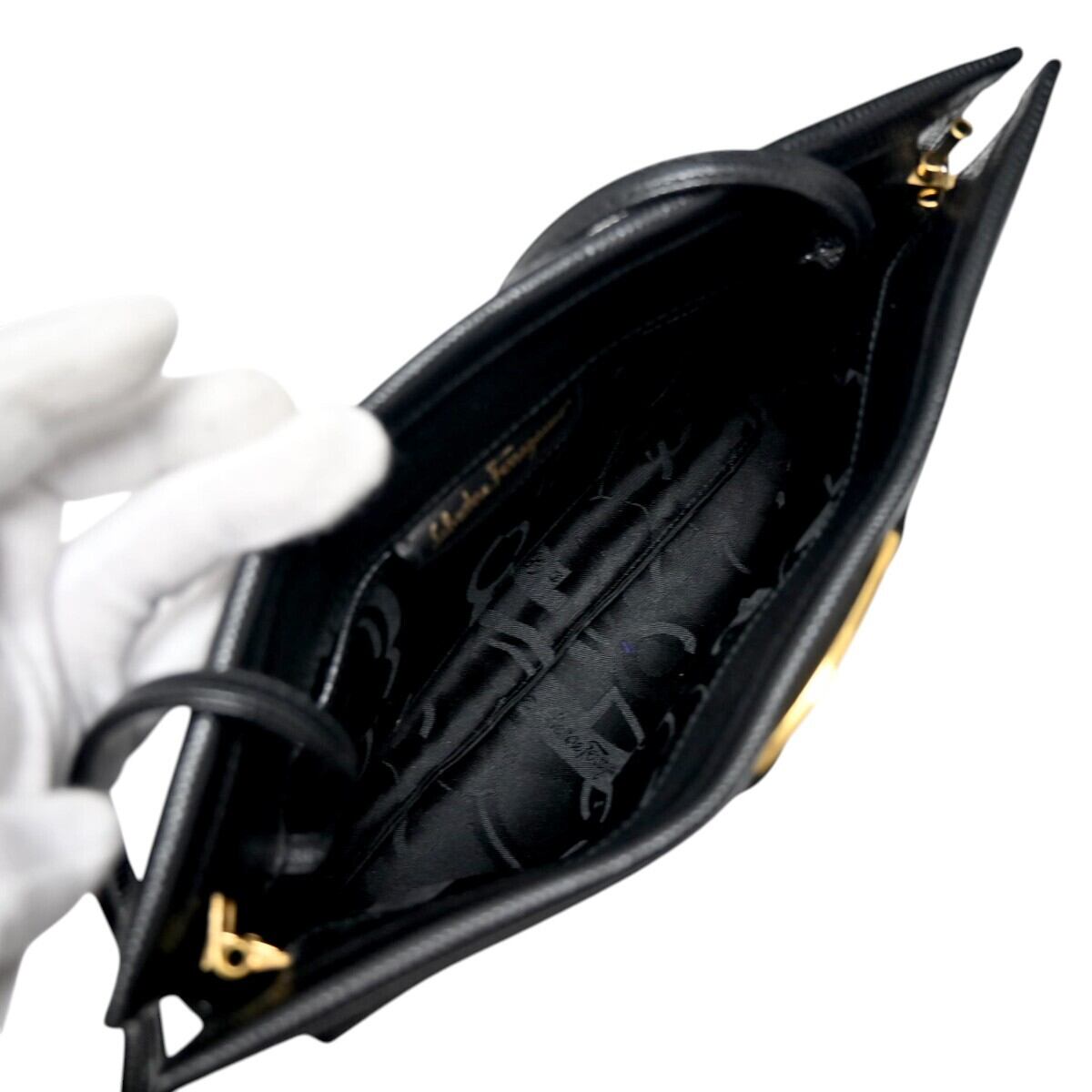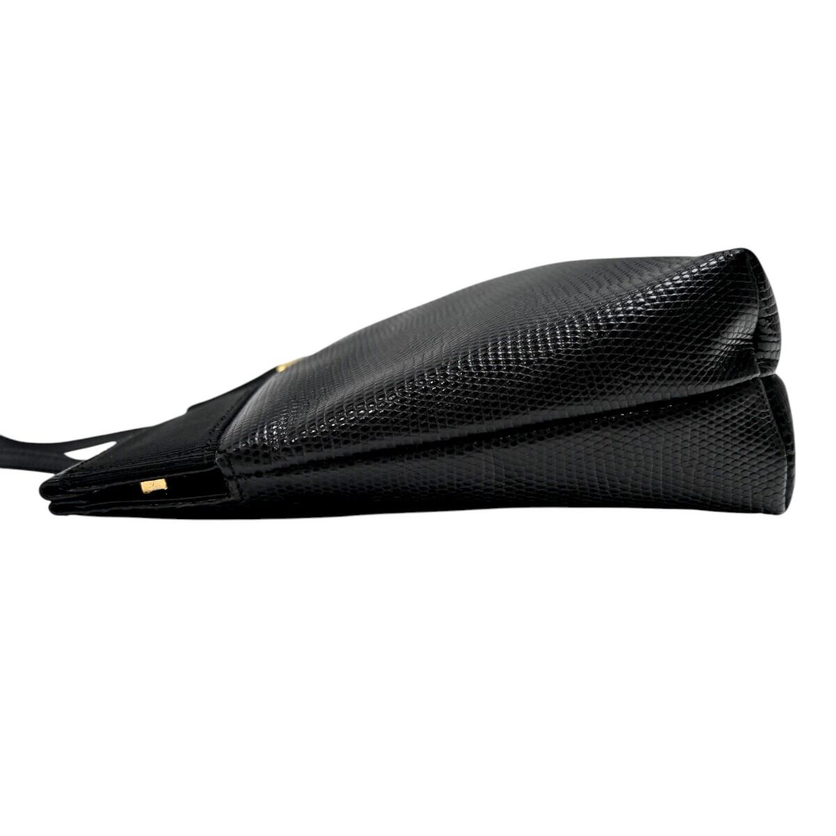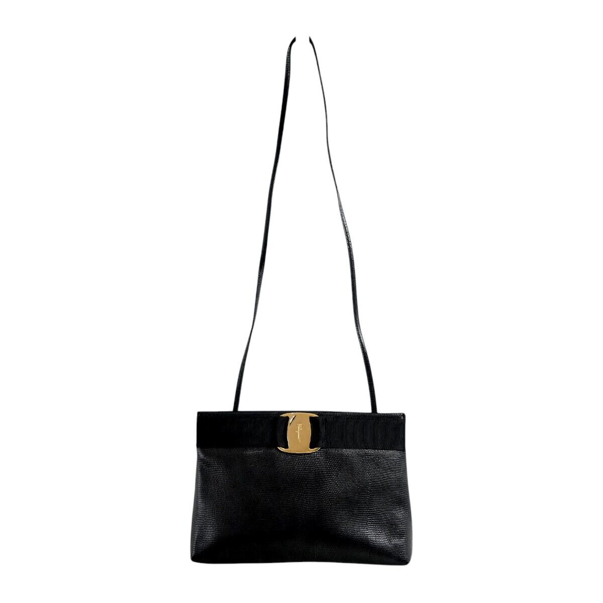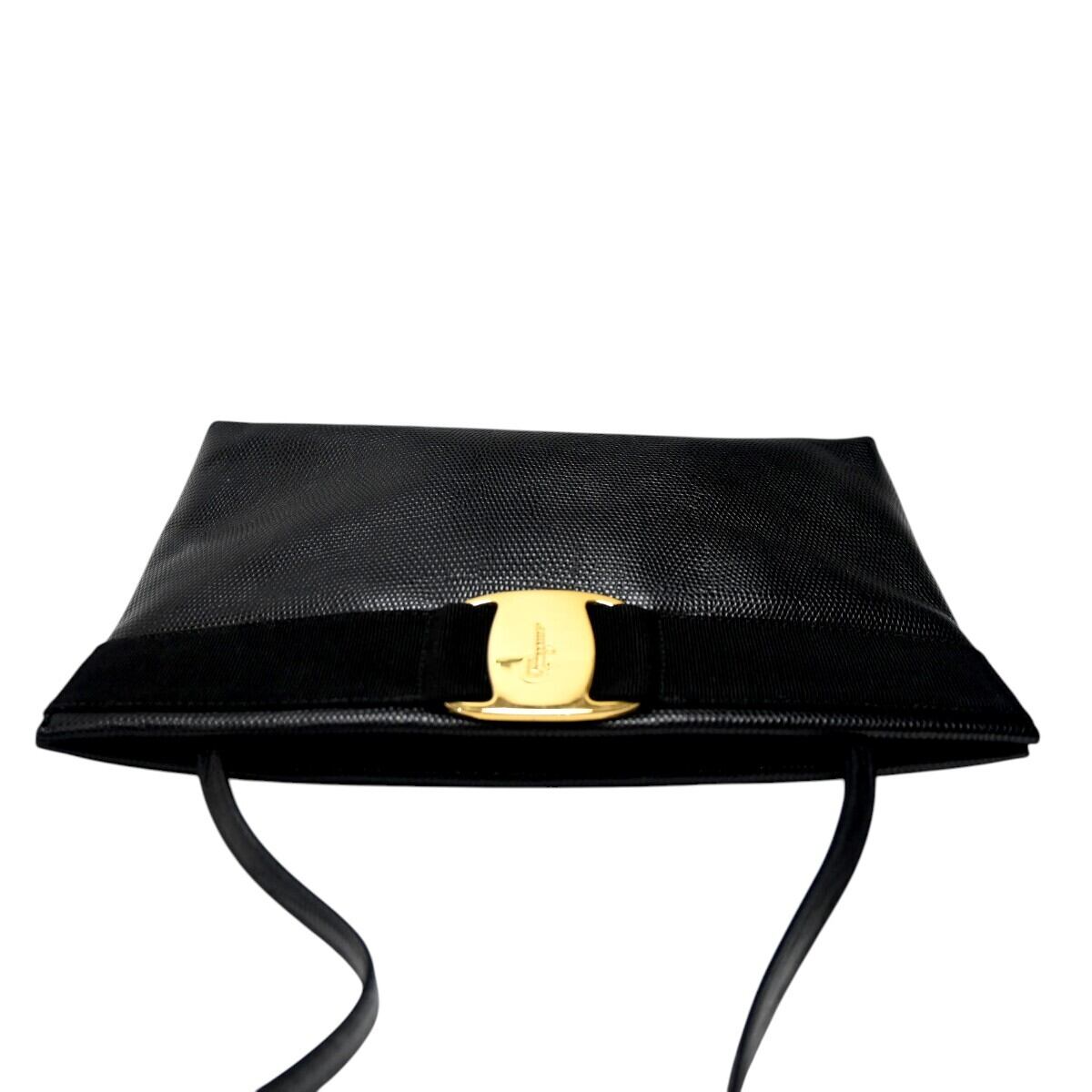 商品名: Salvatore Ferragamo サルヴァトーレフェラガモ ヴァラ リザード型押しレザー ショルダーバッグ ブラック/ゴールド