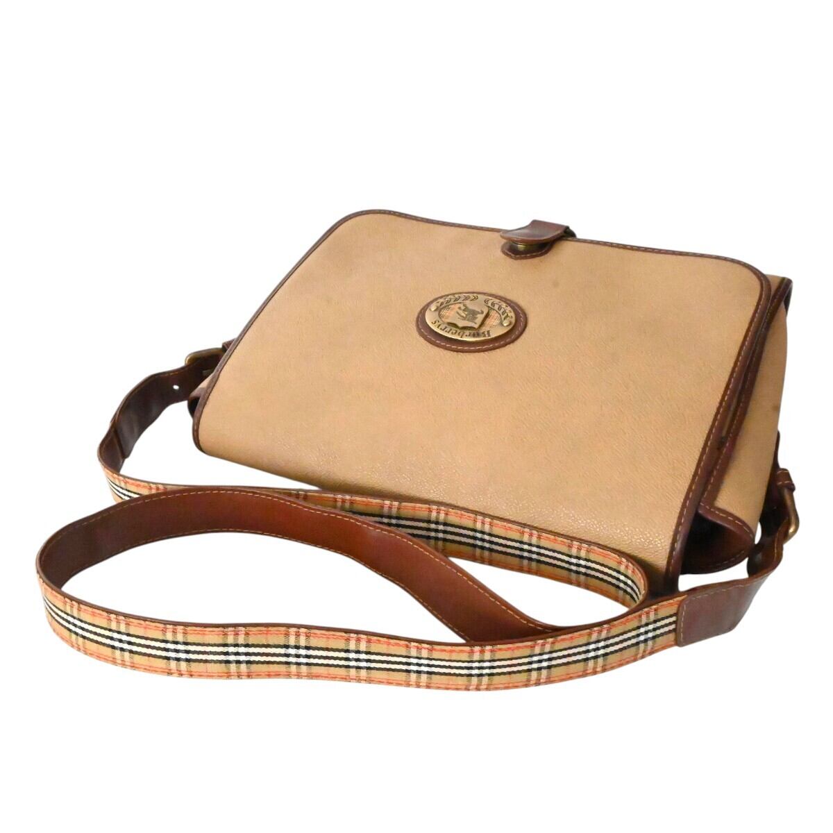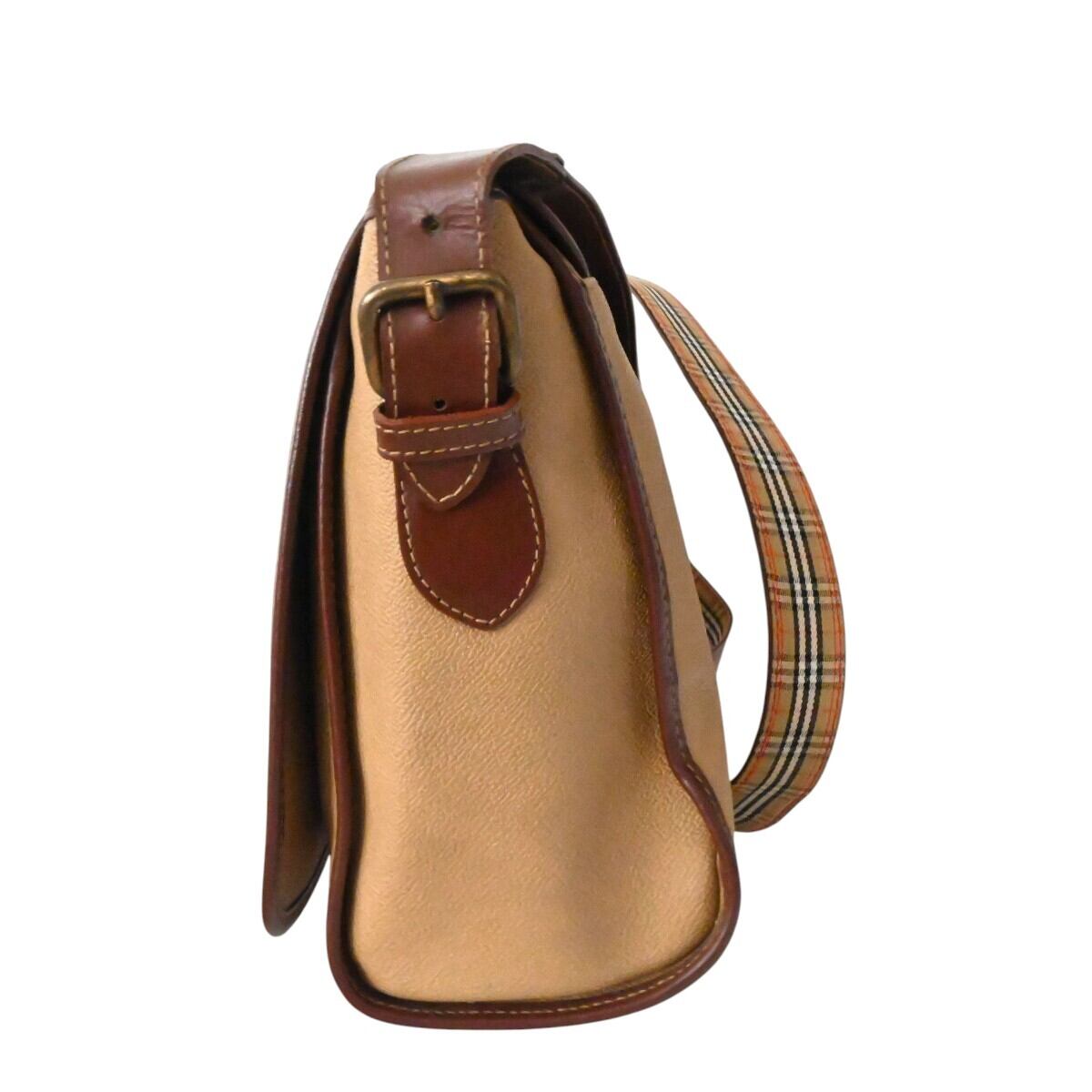 Burberrys バーバリーズ ロゴプレート PVC/レザー ノバチェックストラップ メッセンジャー ショルダーバッグ ベージュ/ブラウン K2604-k017