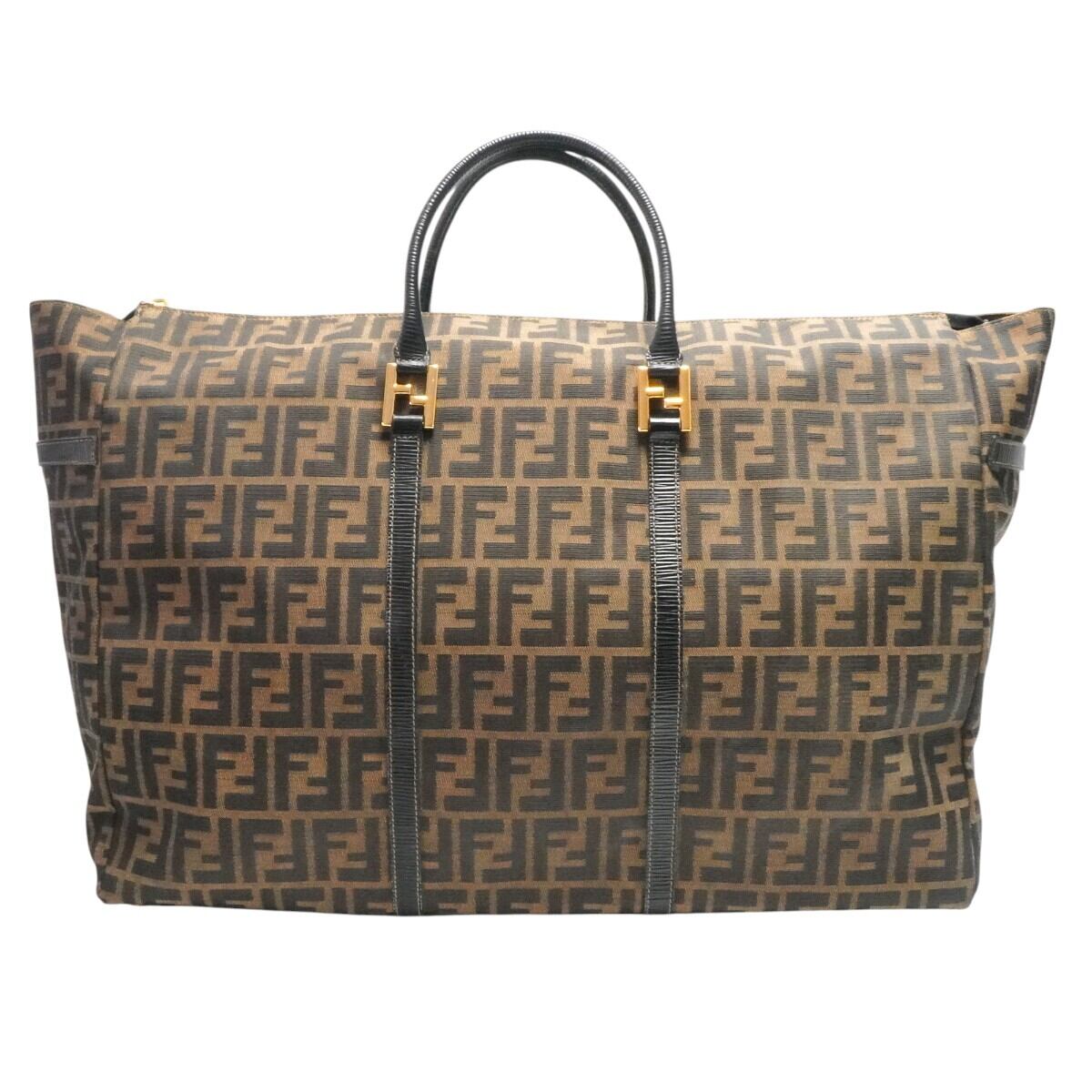 FENDI フェンディ ズッカ FF金具 キャンバス/レザー ボストンバッグ ハンドバッグ カーキ/ブラウン M2604-k048