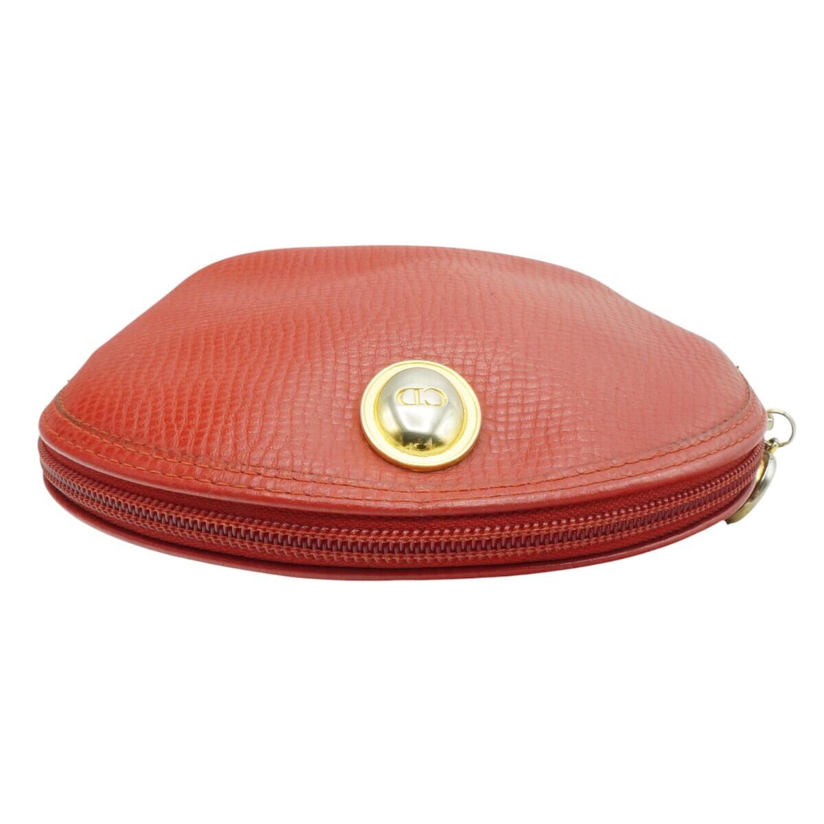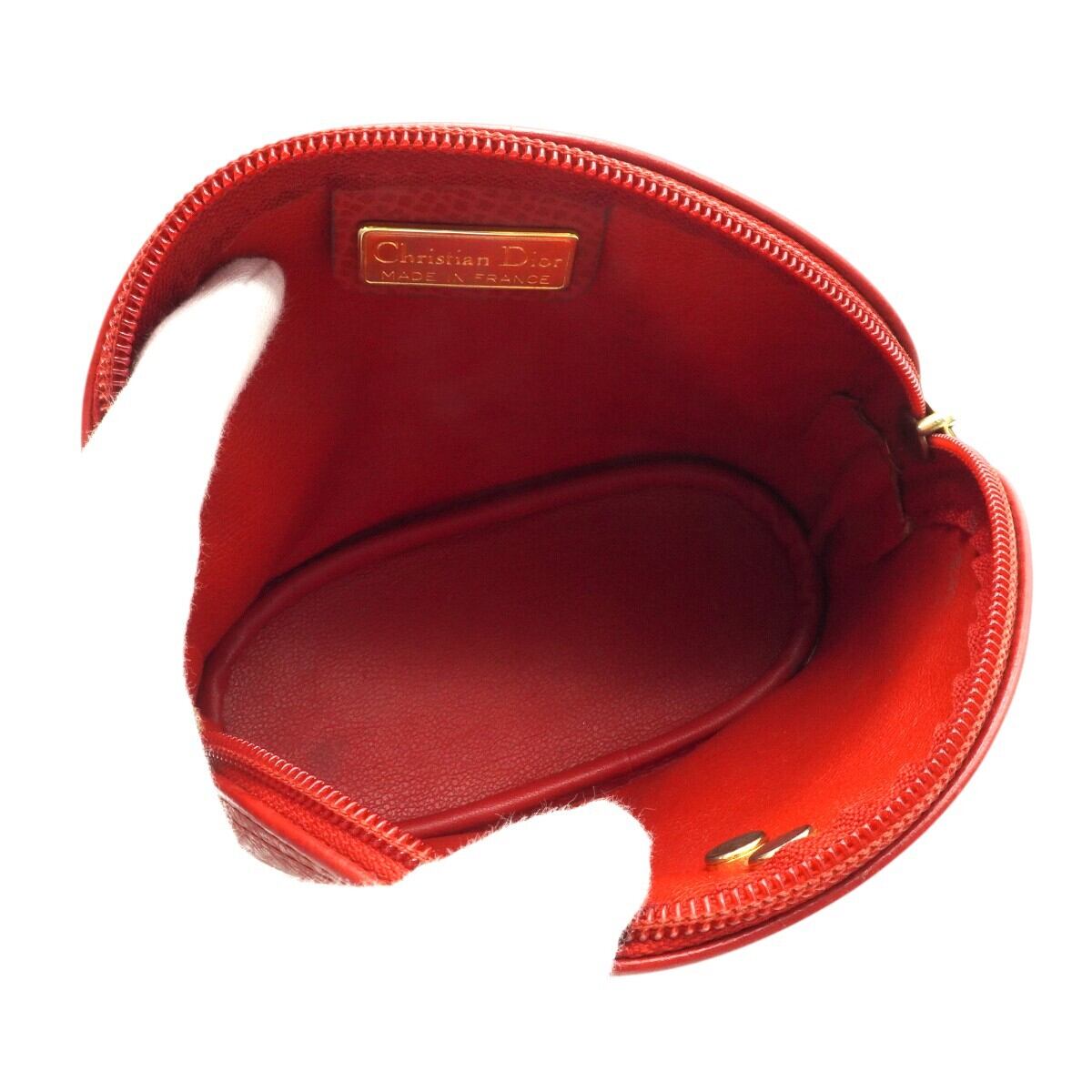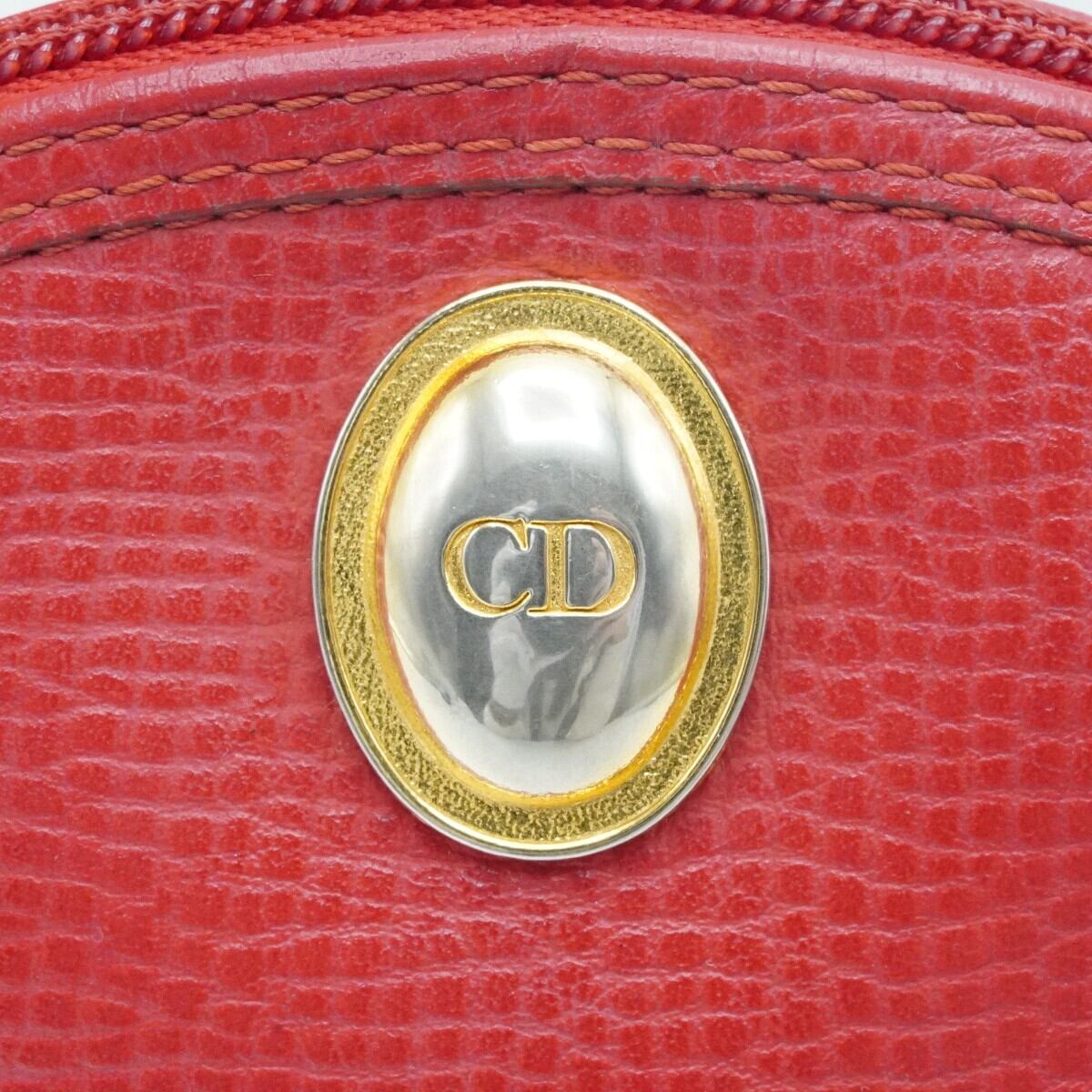Christian Dior クリスチャンディオール ロゴプレート レザー コスメポーチ 小物入れ レッド/ゴールド K2604-k003