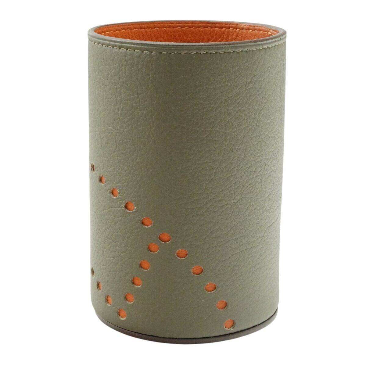 HERMES エルメス エブリン Hロゴ レザー ペン立て ペンホルダー T刻印 エトゥープ/オレンジ S2604-k053