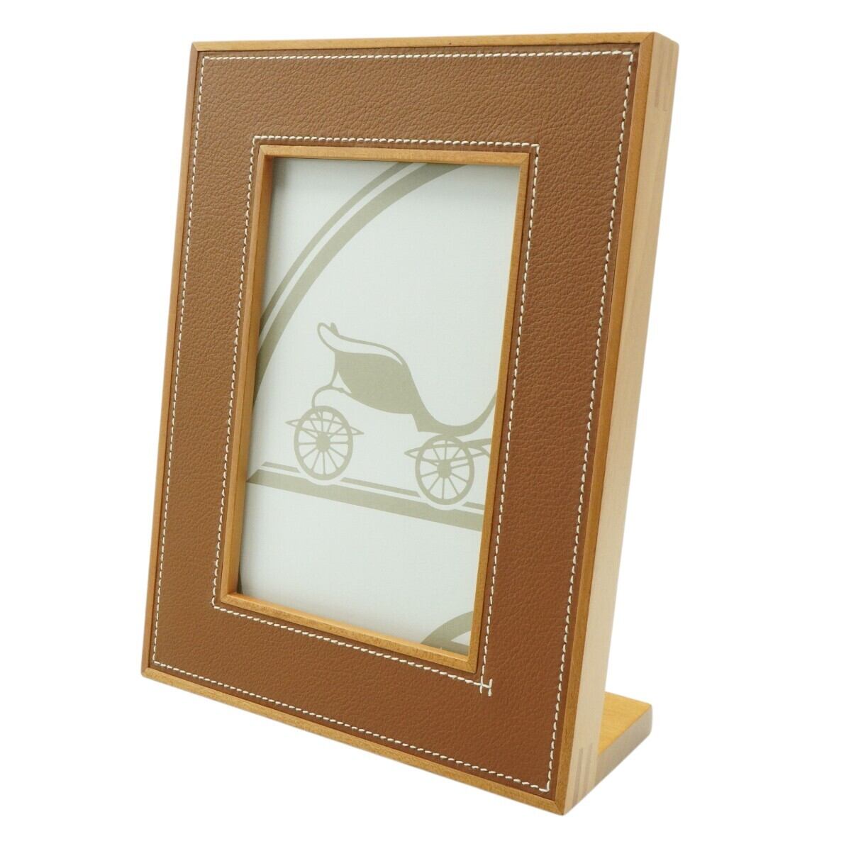 美品 HERMES エルメス プレイヤードPM トリヨンレザー/マホガニーウッド セリエステッチ入り フォトフレーム 写真立て チャ S2604-k051