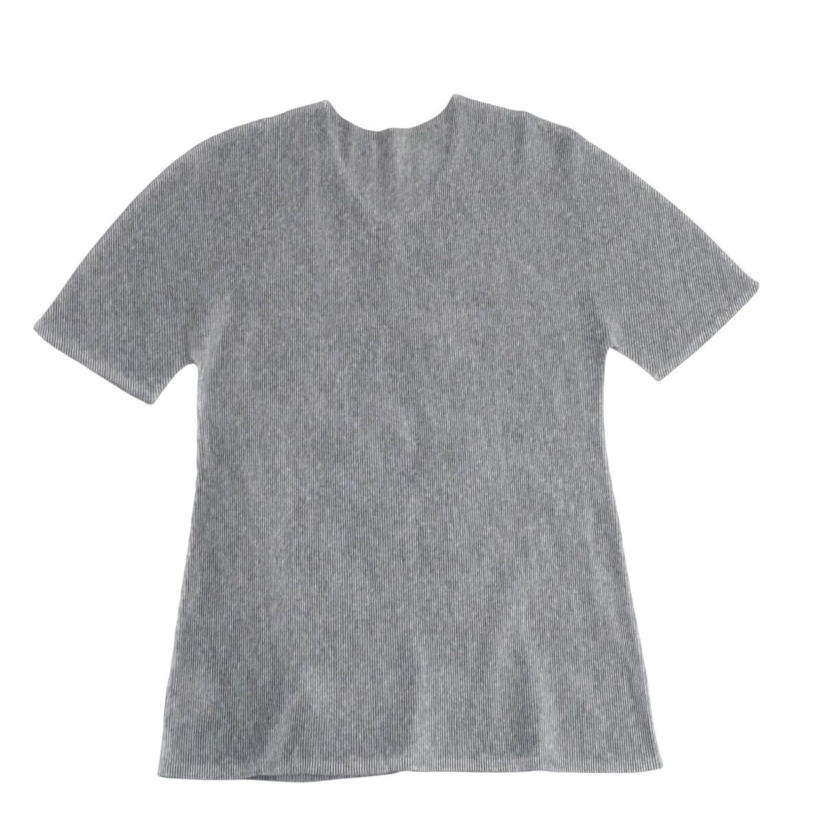 PLEATS PLEASE ISSEY MIYAKE プリーツプリーズ イッセイミヤケ ポリエステル プリーツ フレンチスリーブ トップス 3 グレー M2604-k069