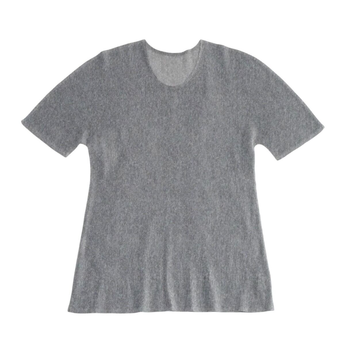 商品名: PLEATS PLEASE ISSEY MIYAKE プリーツプリーズ イッセイミヤケ ポリエステル プリーツ フレンチスリーブ トップス 3 グレー