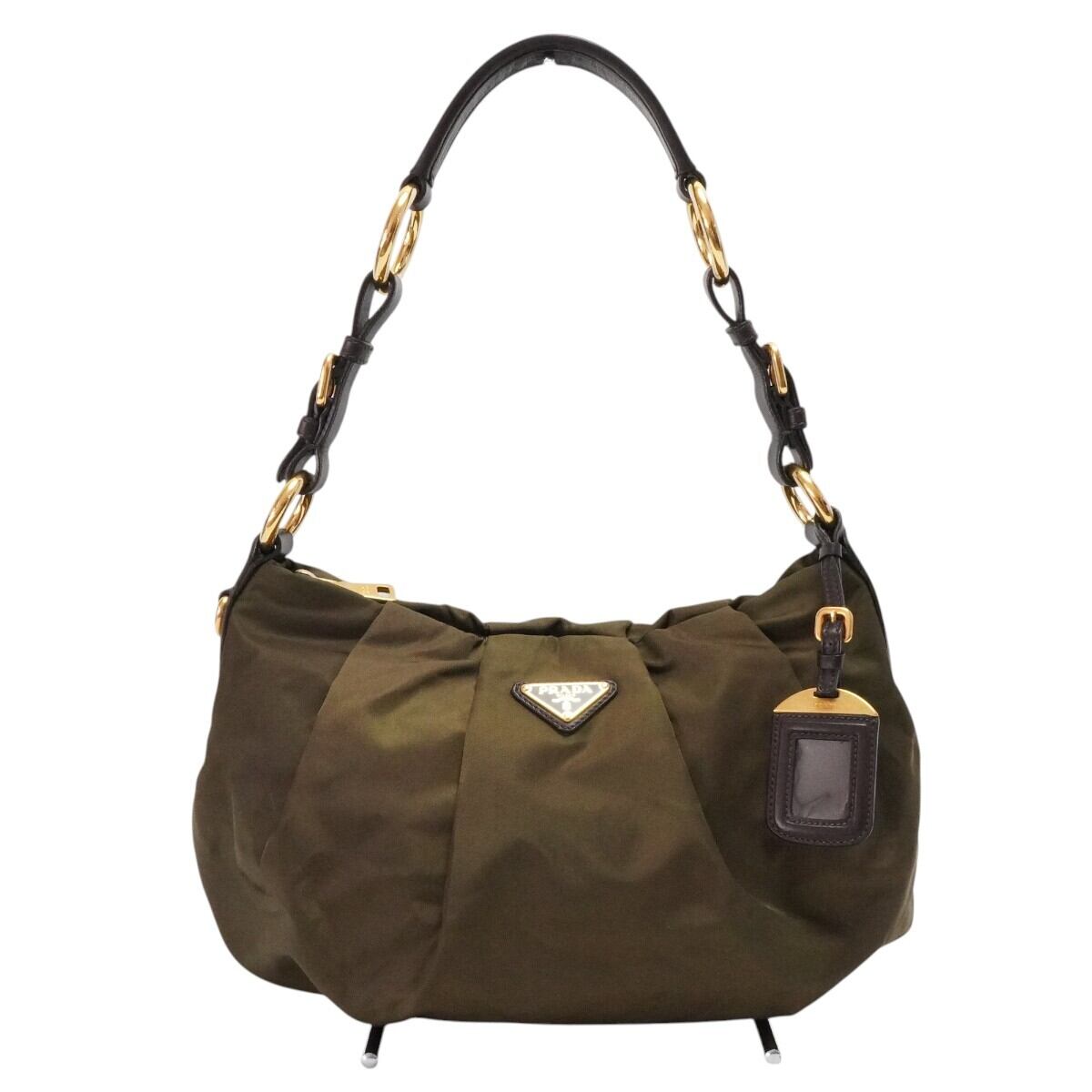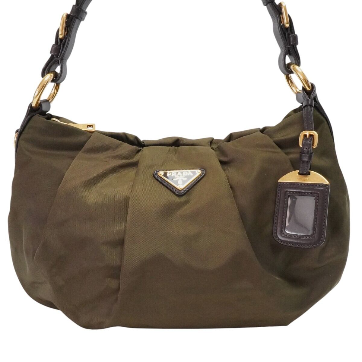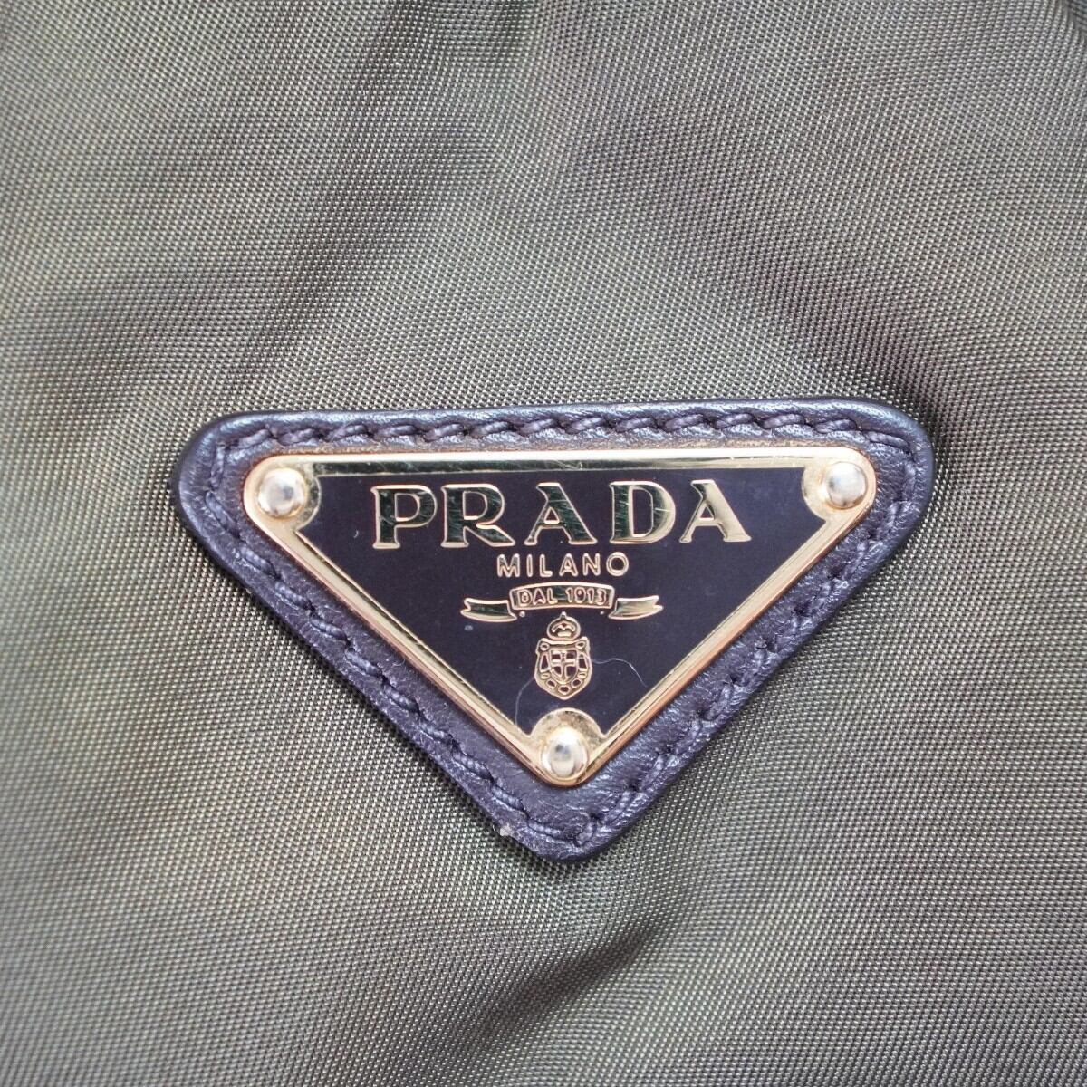 PRADA プラダ ロゴプレート ナイロン/レザー ワンショルダーバッグ ハンドバッグ カーキ/ブラウン/ゴールド S2604-k090