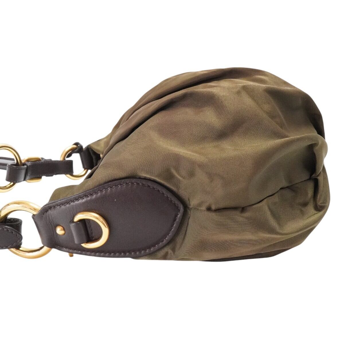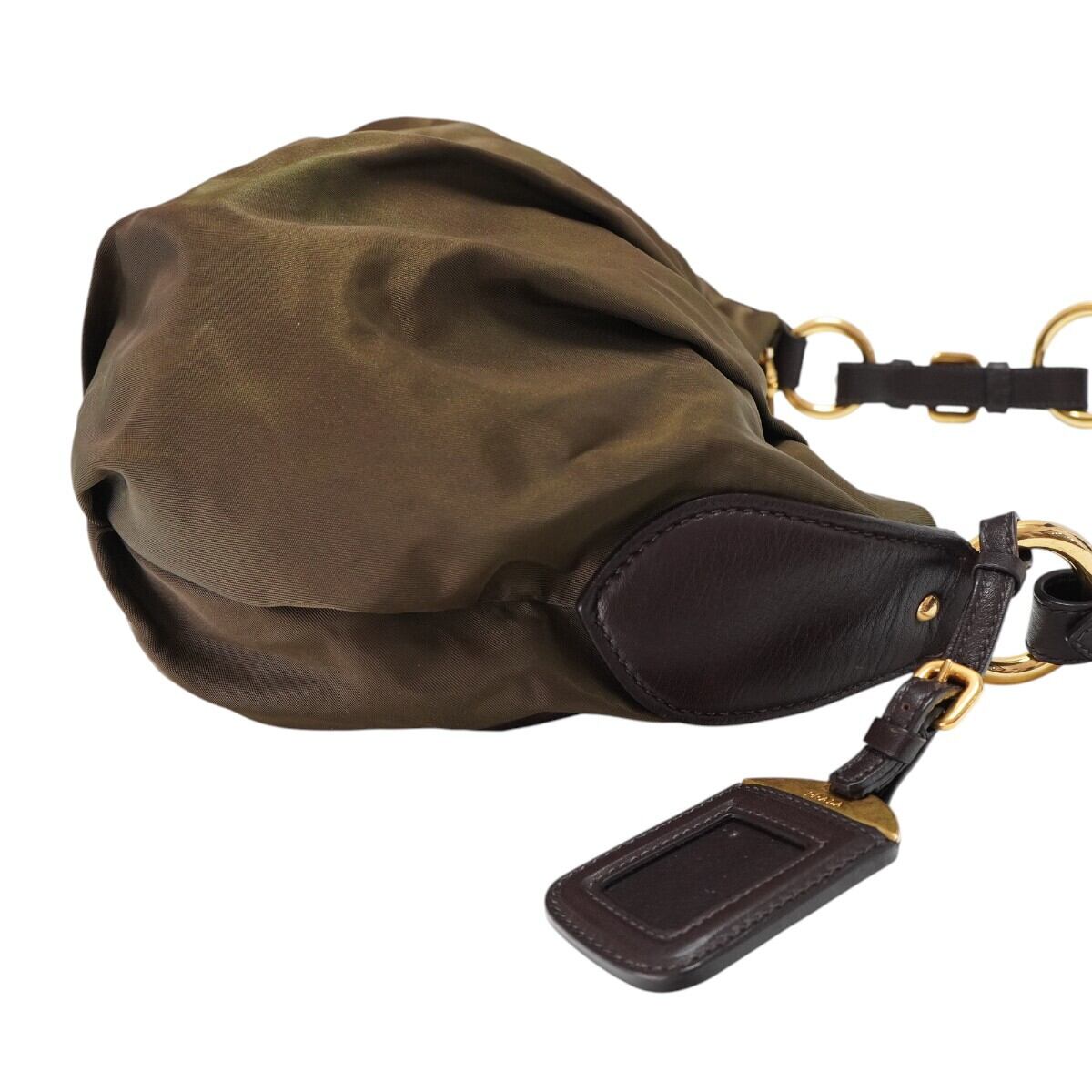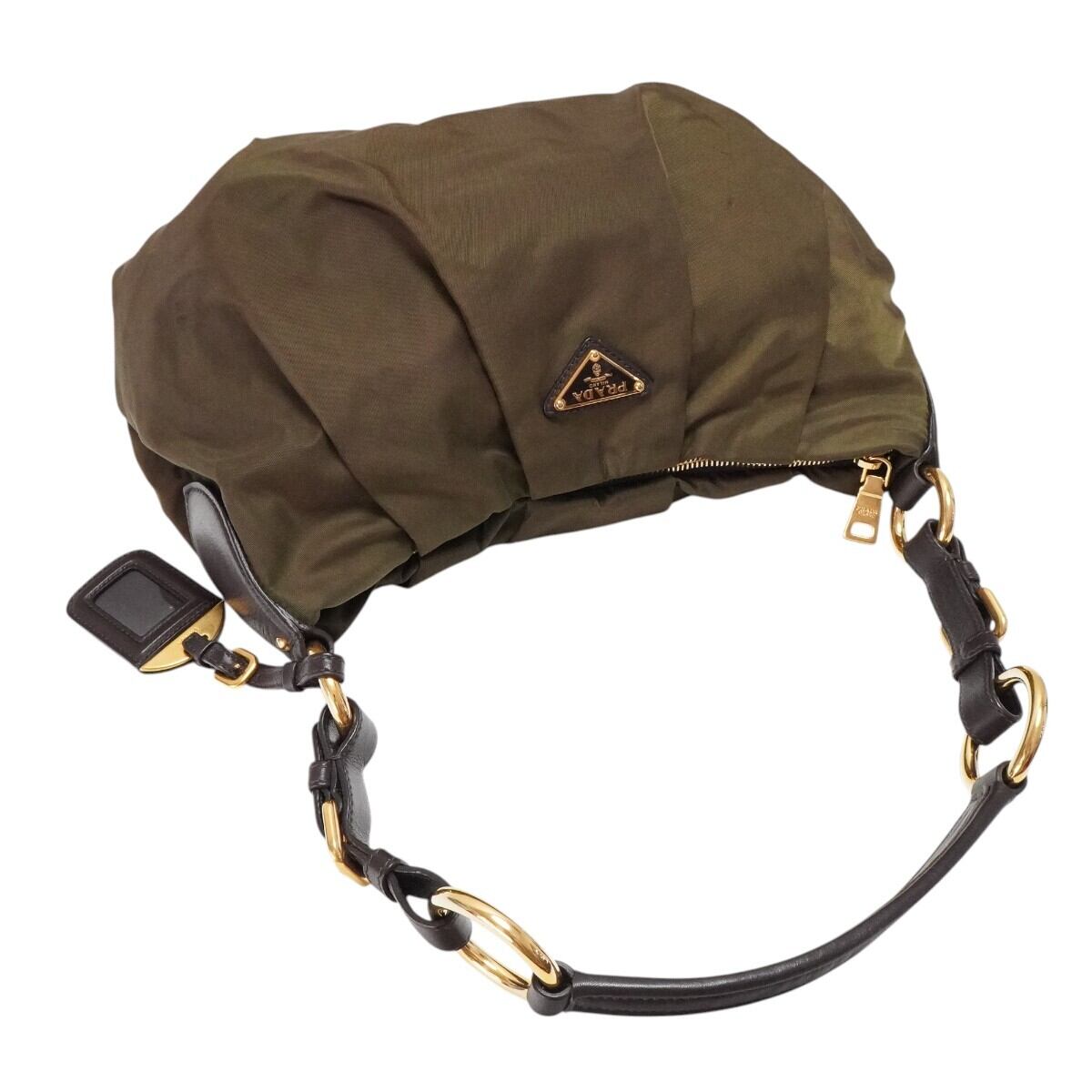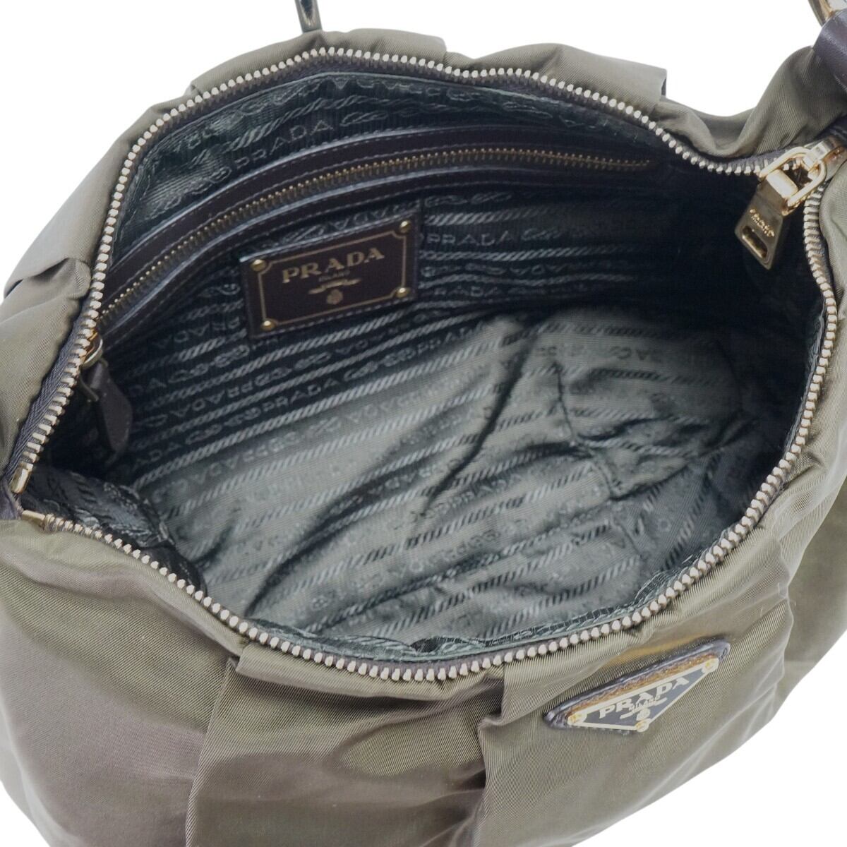 PRADA プラダ ロゴプレート ナイロン/レザー ワンショルダーバッグ ハンドバッグ カーキ/ブラウン/ゴールド S2604-k090